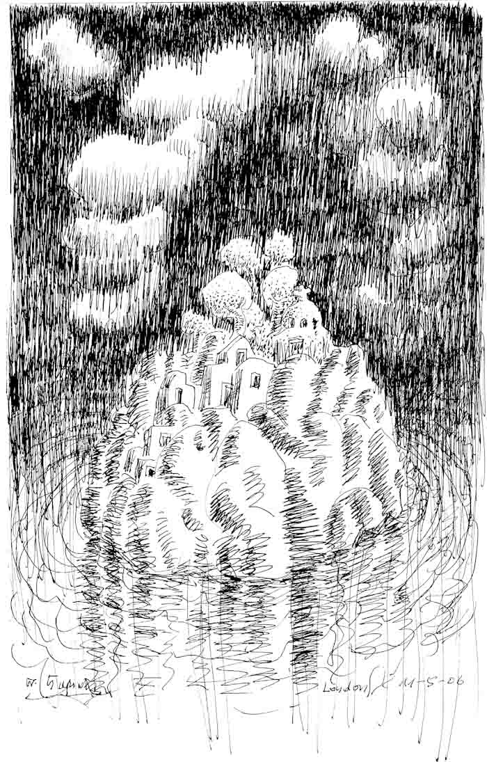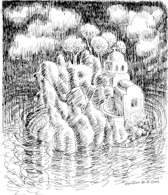 Small Houses on an Island, drawing, 2014