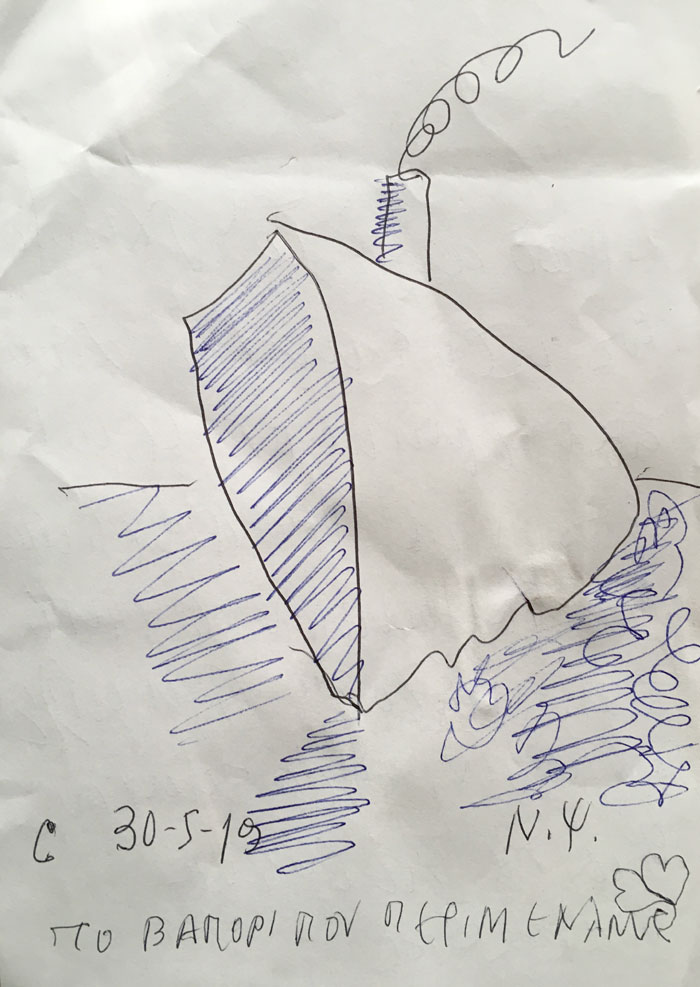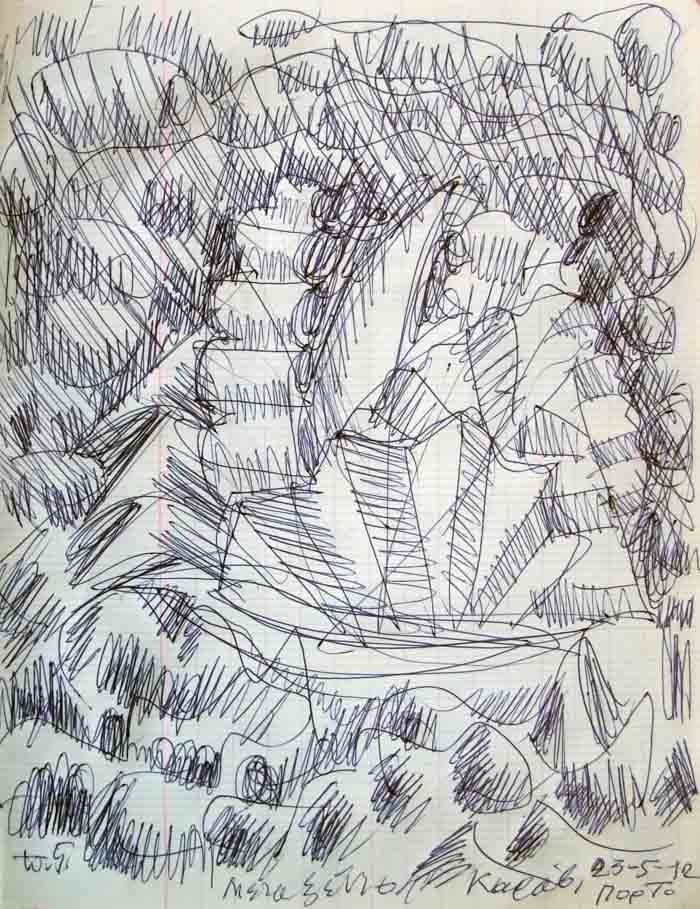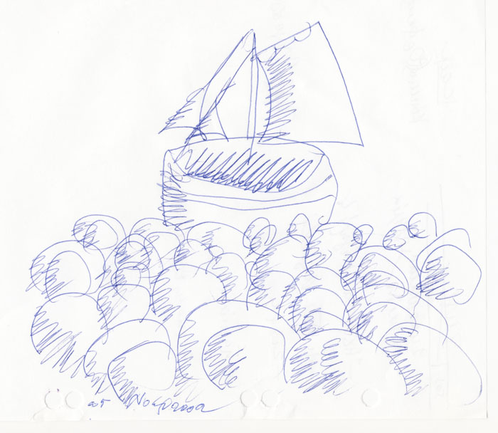 The drawing from which came a series of painting named "The Boat we are Waiting for".