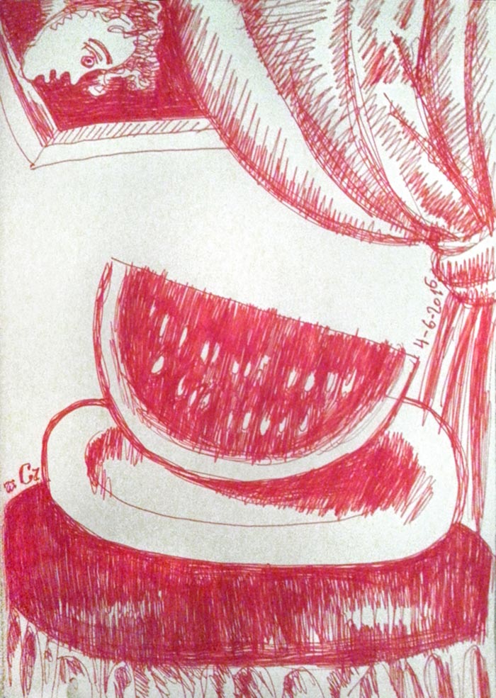 "Red Summer", drawing by ball pen, 2016.