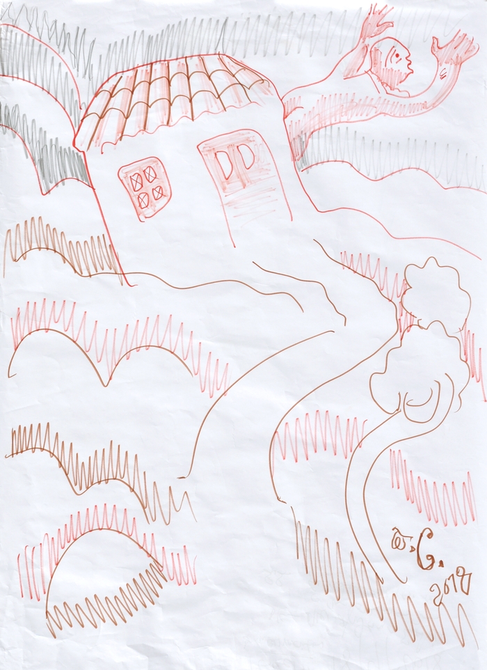 Π68 - Τα τρία δένδρα, 2006, ζωγραφική με πένα, 13*16