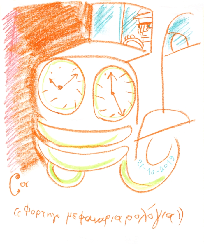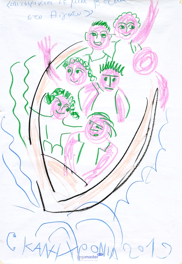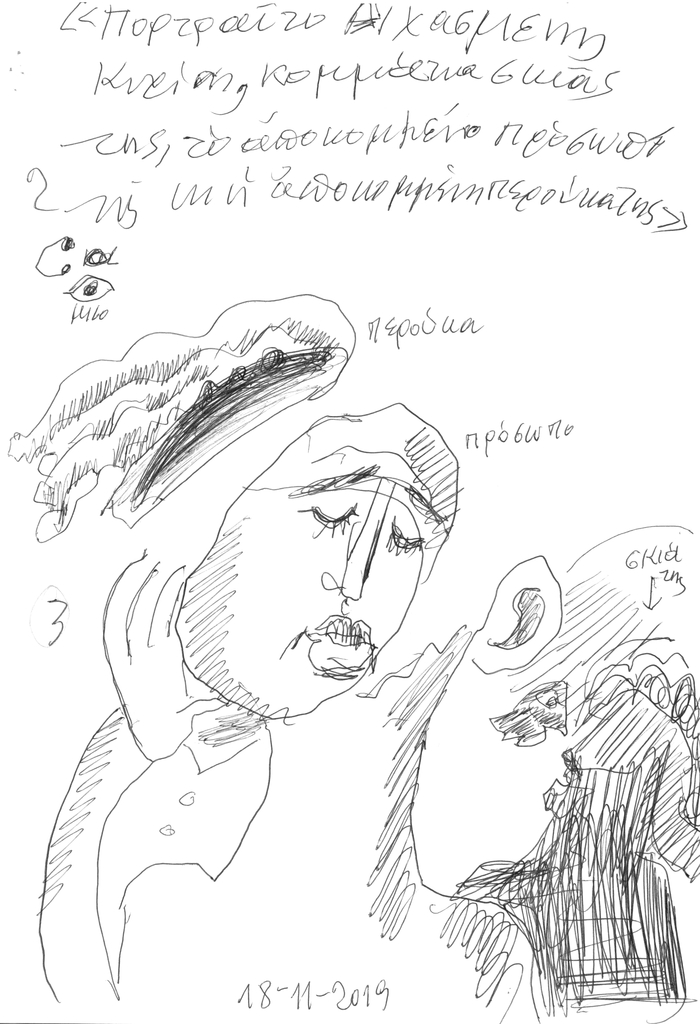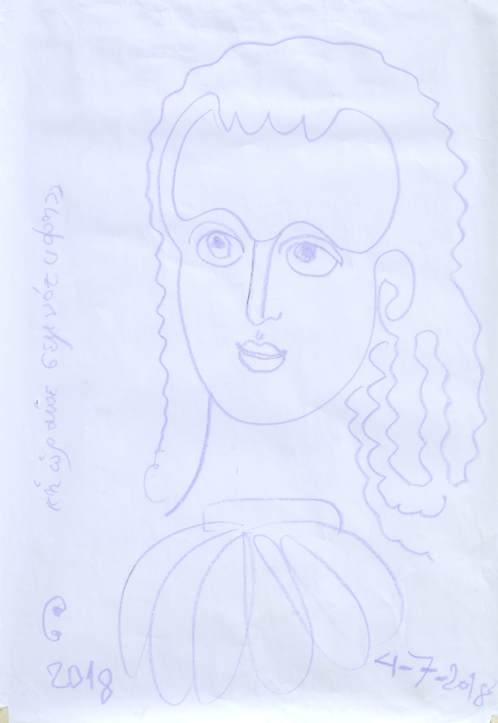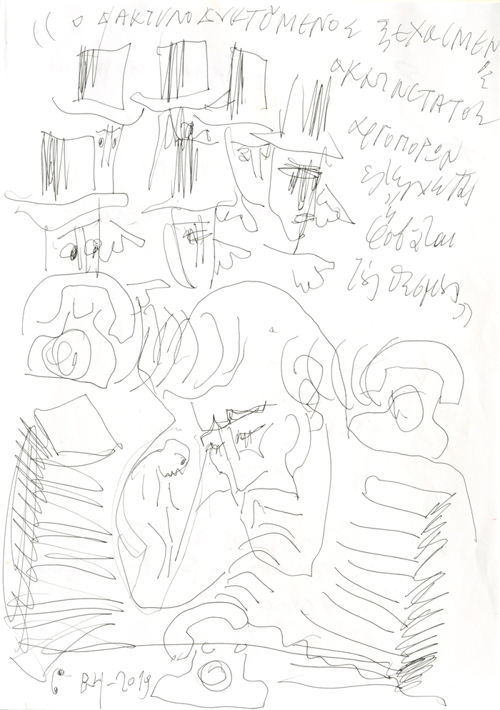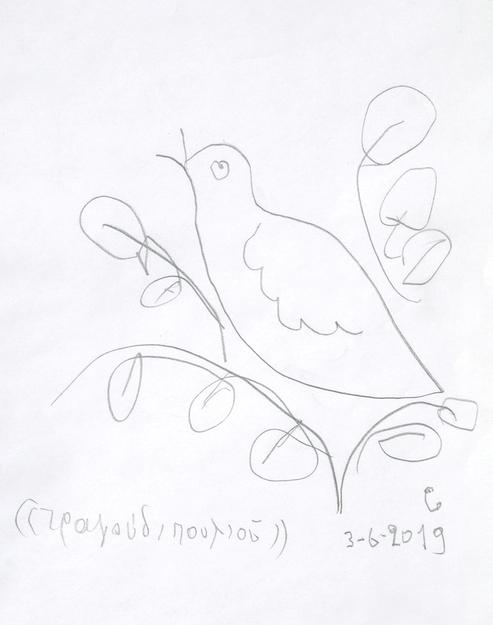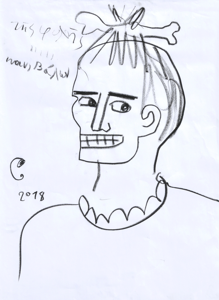 Π-20-ΑΓΓΕΛΟΣ μας χαιρετά, 2020, μπλε ακρυλικό σε λευκό μουσαμά, 69Χ56 εκ.
