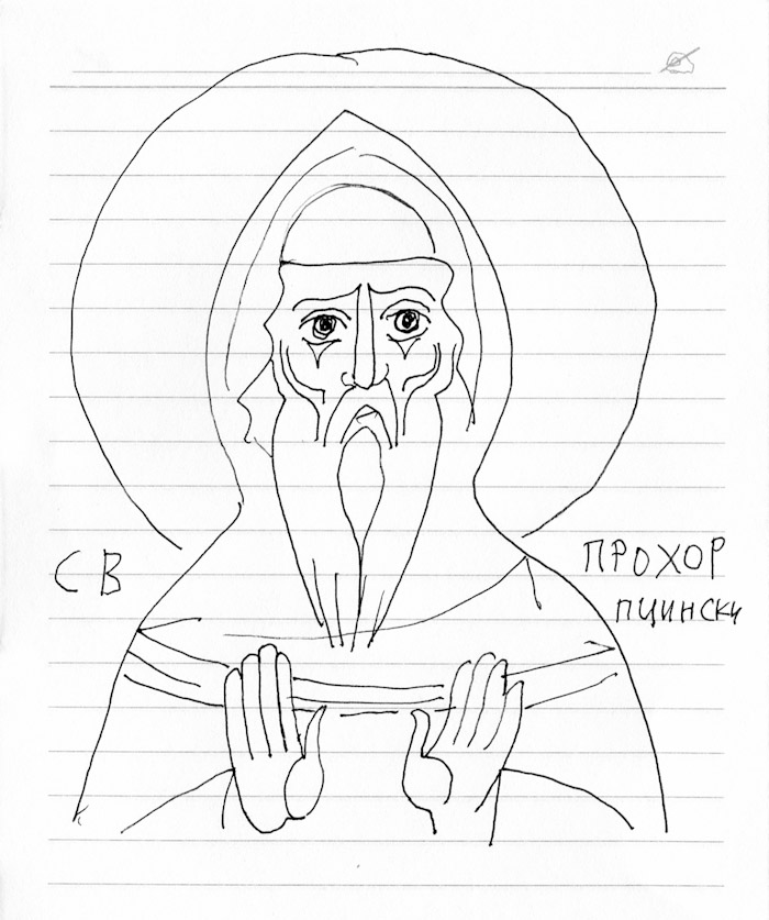 St Nectarios' Mother Teaches Him Letters, drawing, 2014.