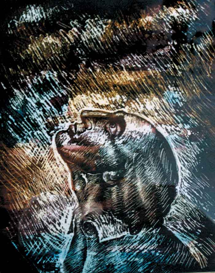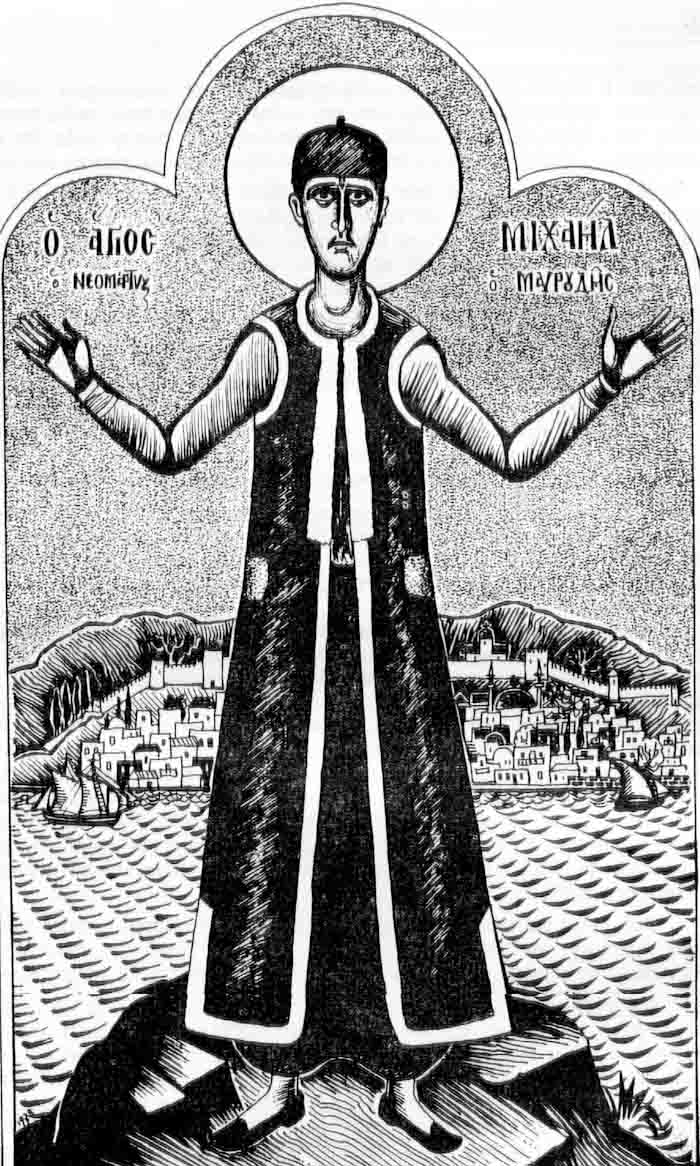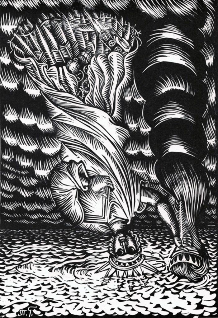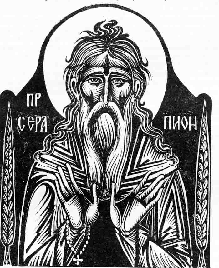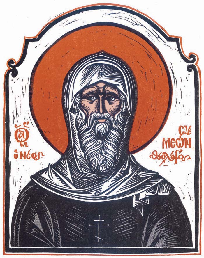 Saint Symeon the Fool for Christ, engraving on linoleum
