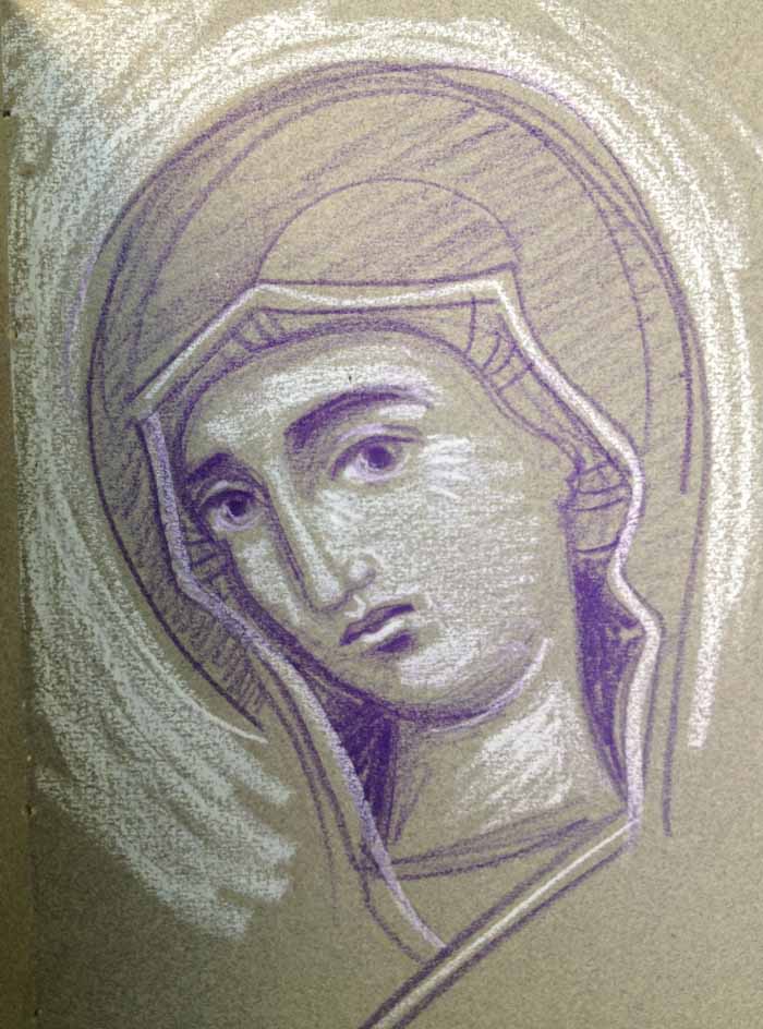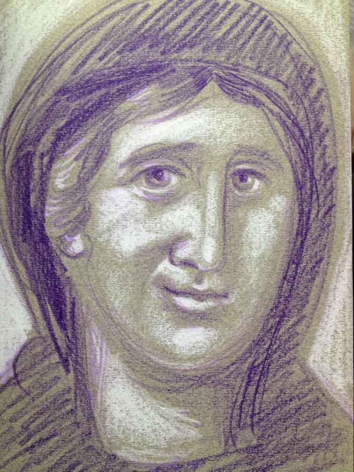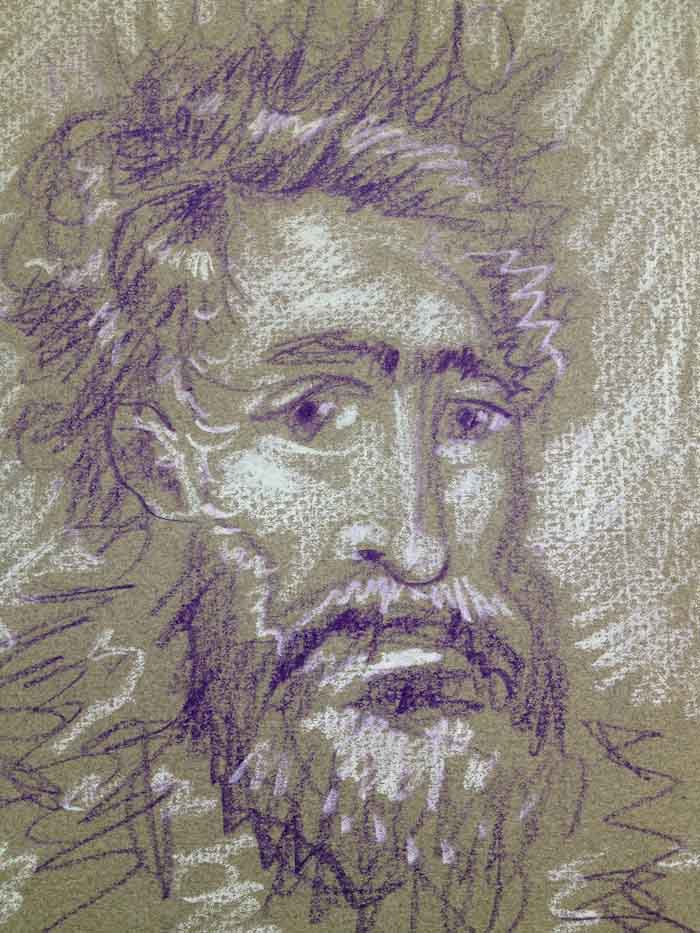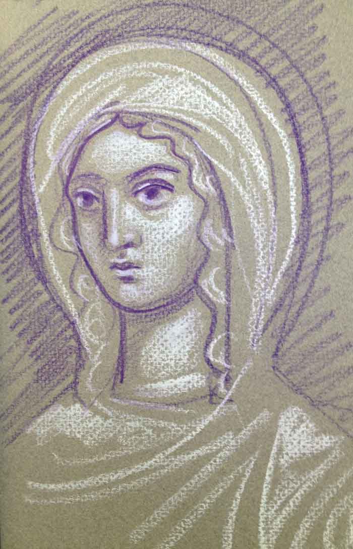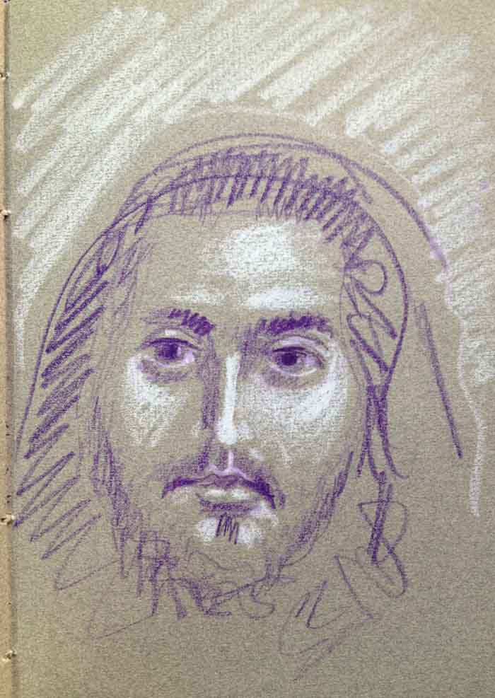 Stamatis’ pastels are a unique effort among the Orthodox iconographers to evoke and elicit the byzantine artistic view through the medium of pastel. The color effect of these pastels is very close to the natural dry pigments. Pastel is an art medium in the form of a stick, consisting of pure powdered pigment and a binder. These portrayals show that the byzantine art is not limited in its potential. Stamatis pastel crayons (from pure powdered pigments) vigorously capture various human psychological moments. The pastel medium was first mentioned by Leonardo da Vinci in 1495. During the 18th century the medium became fashionable for portrait painting, sometimes in a mixed technique with gouache.