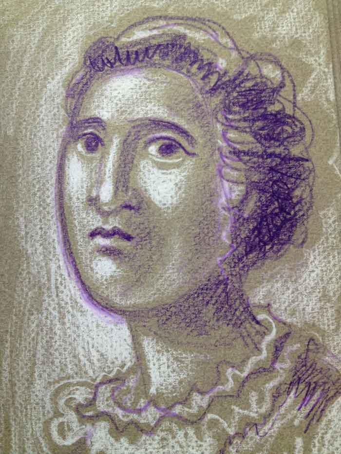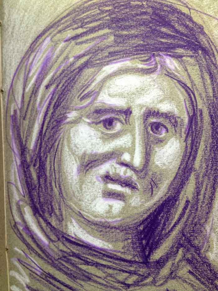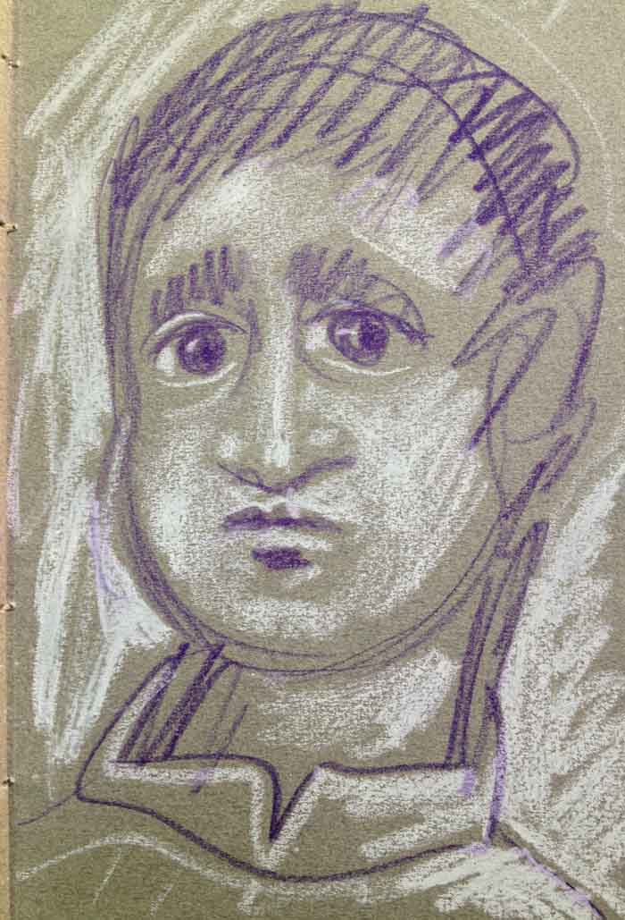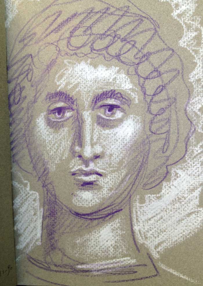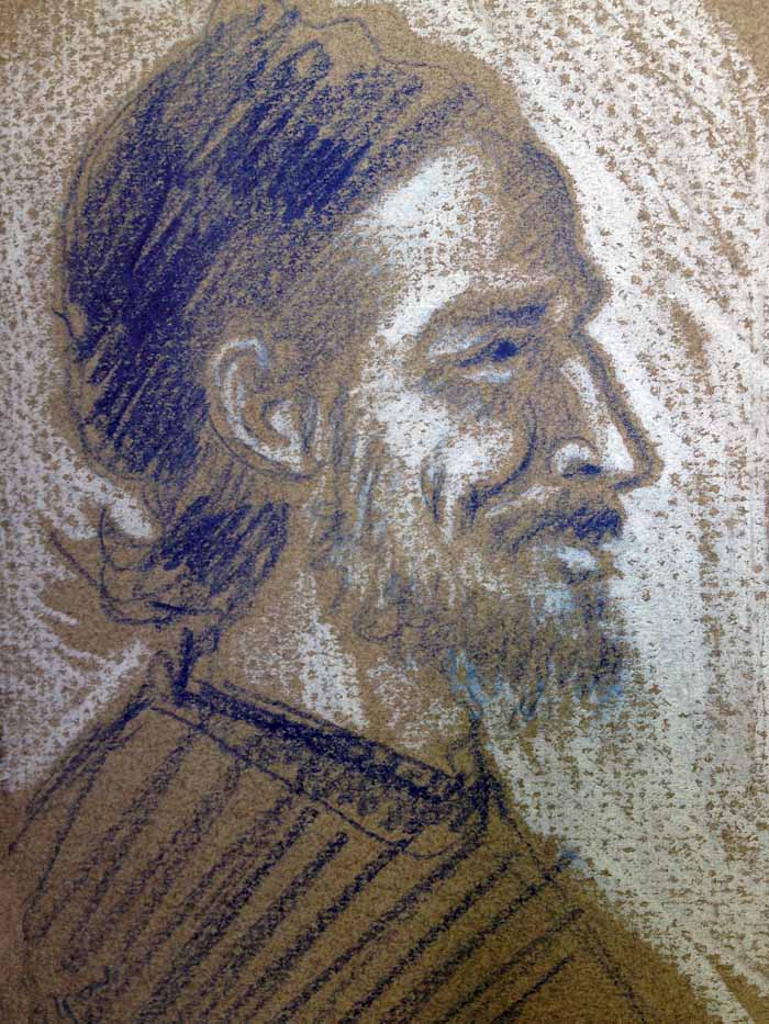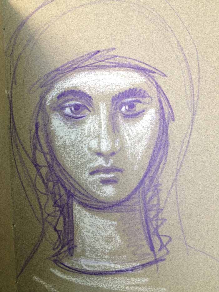 Stamatis’ pastels are a unique effort among the Orthodox iconographers to evoke and elicit the byzantine artistic view through the medium of pastel. The color effect of these pastels is very close to the natural dry pigments. Pastel is an art medium in the form of a stick, consisting of pure powdered pigment and a binder. These portrayals show that the byzantine art is not limited in its potential. Stamatis pastel crayons (from pure powdered pigments) vigorously capture various human psychological moments. The pastel medium was first mentioned by Leonardo da Vinci in 1495. During the 18th century the medium became fashionable for portrait painting, sometimes in a mixed technique with gouache.