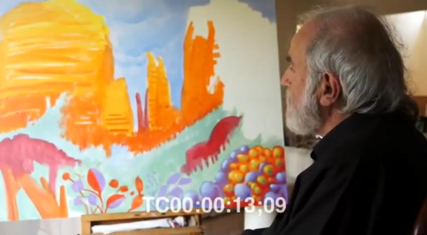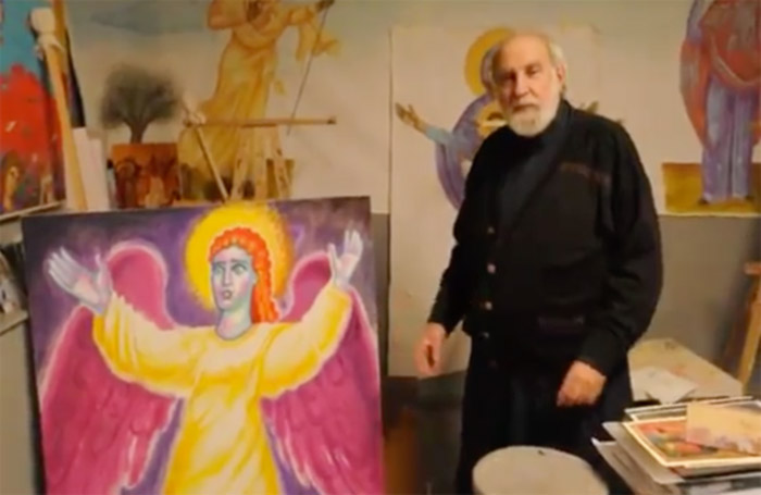Fr. Stamatis explains his work "Angel of the Resurrection”, Acrylic on canvas, 2017