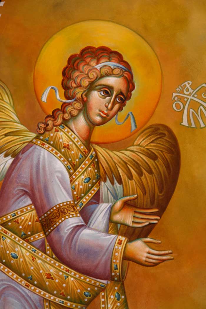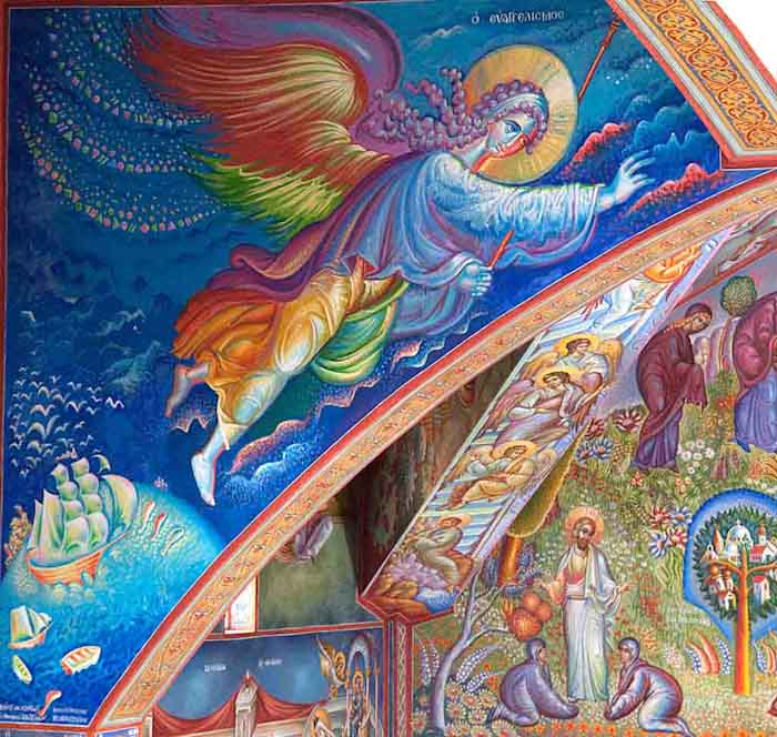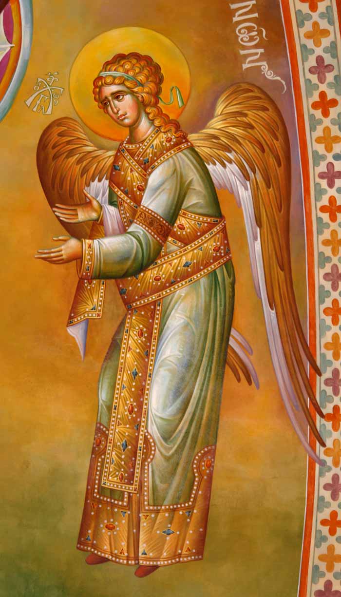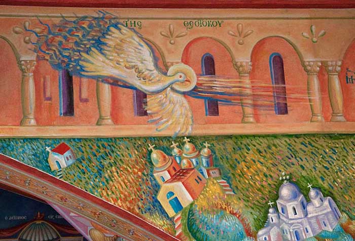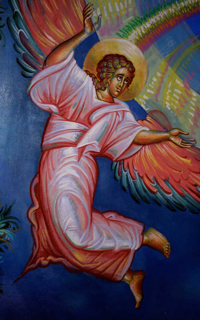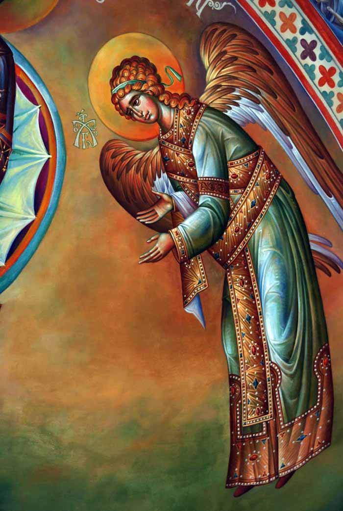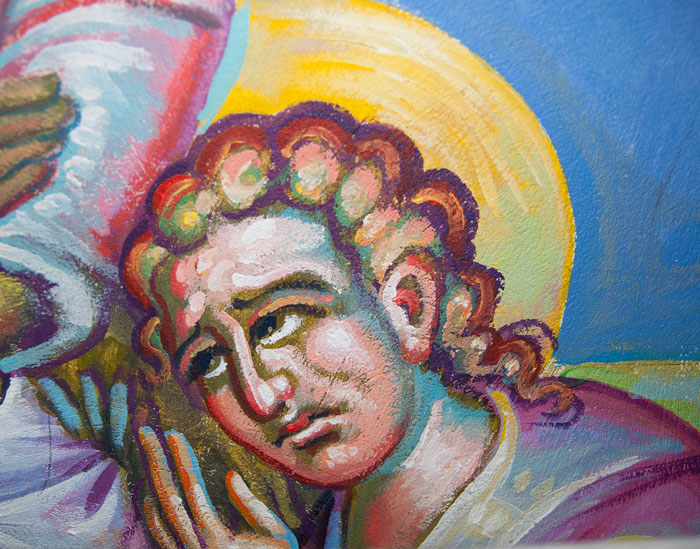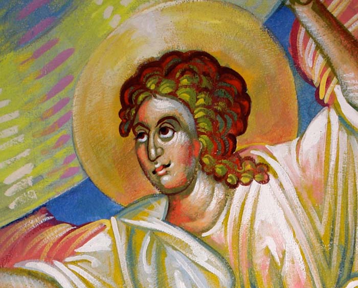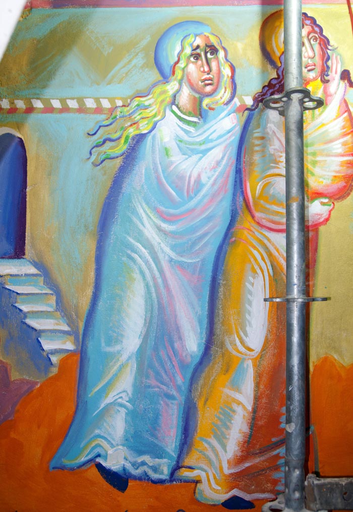 The Annunciation, detail, St Nektarios Church in Voula, Athens, wall-paintings by Stamatis Skliris, 2012.