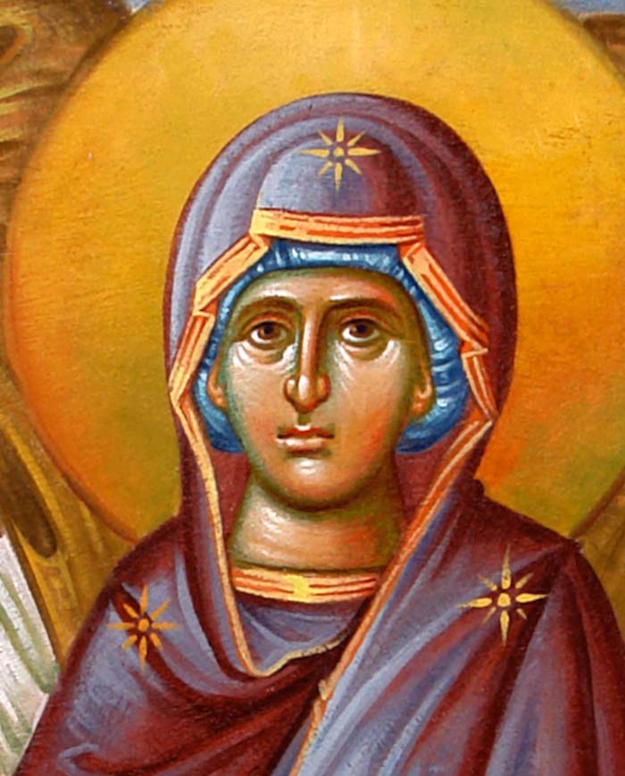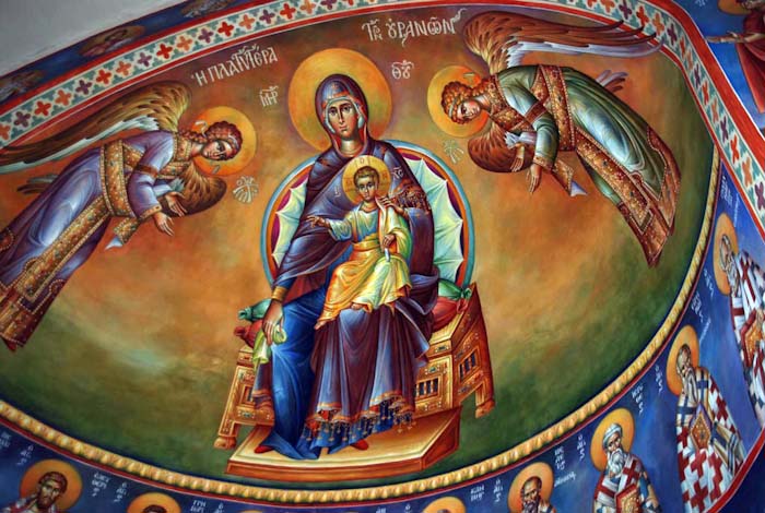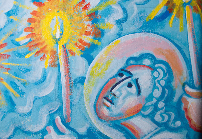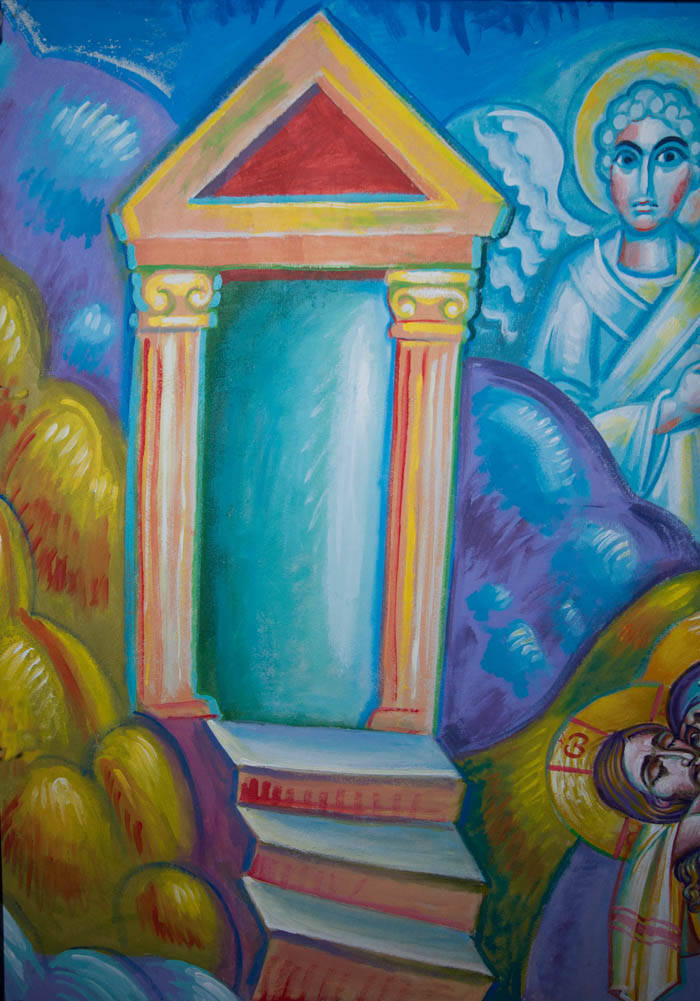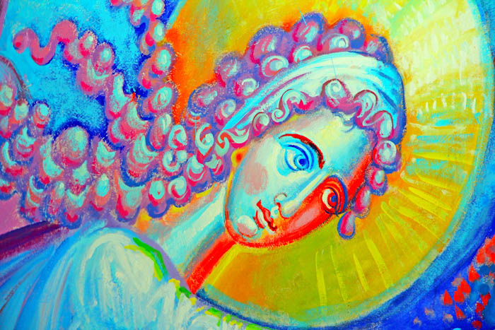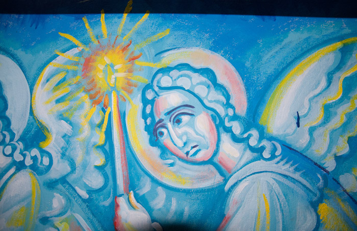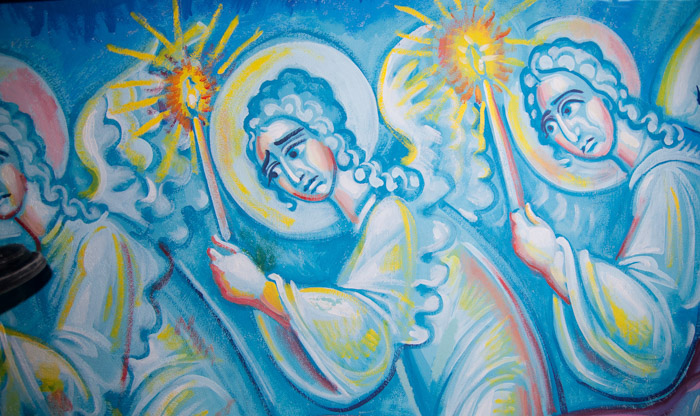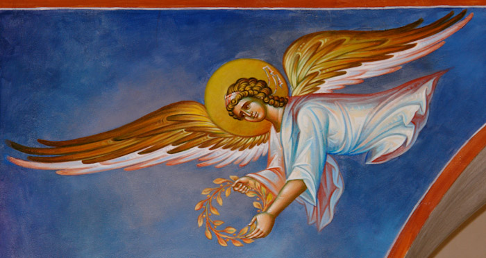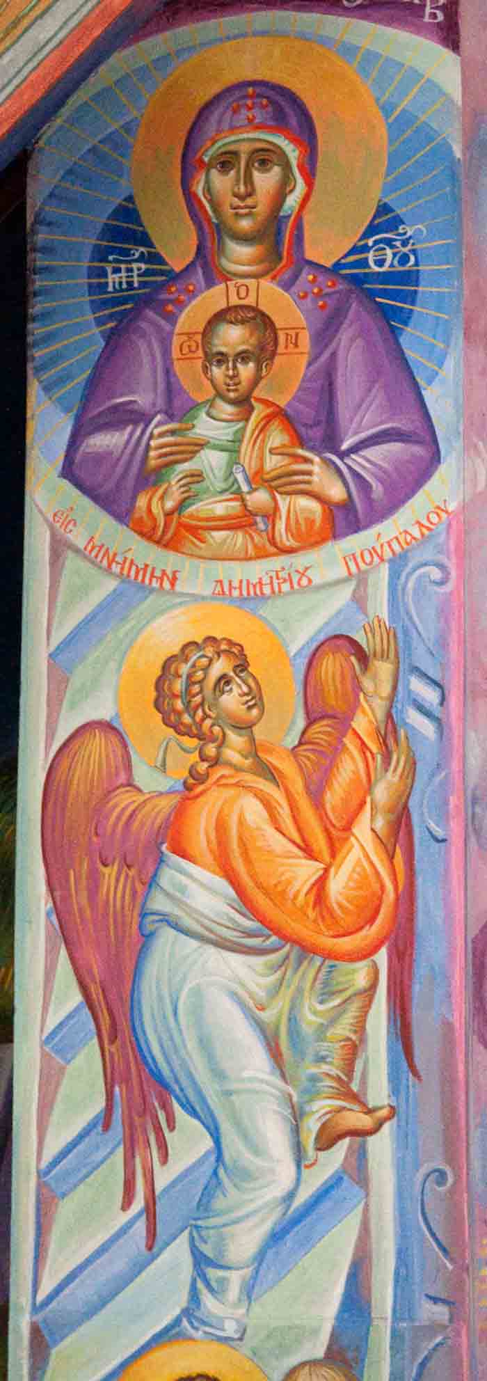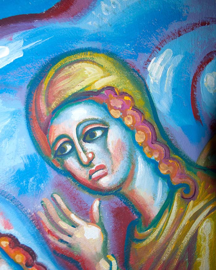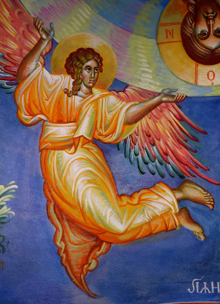 The Annunciation, detail, St Nektarios Church in Voula, Athens, wall-paintings by Stamatis Skliris, 2012.