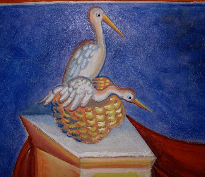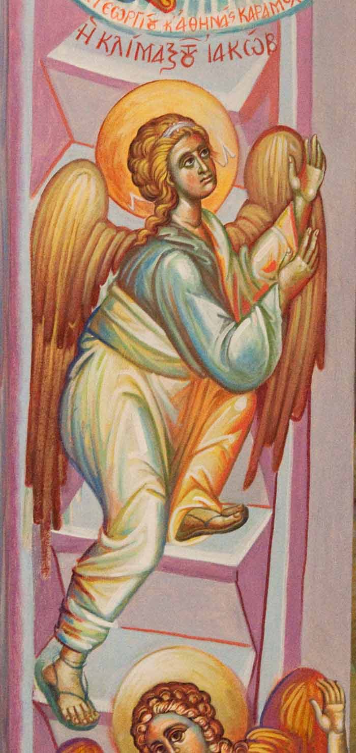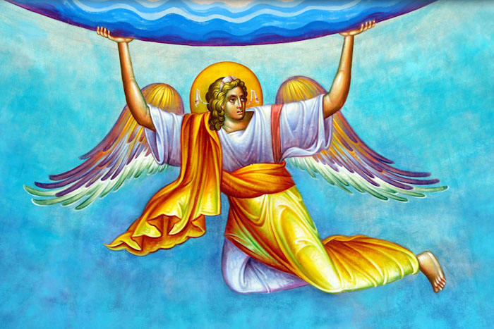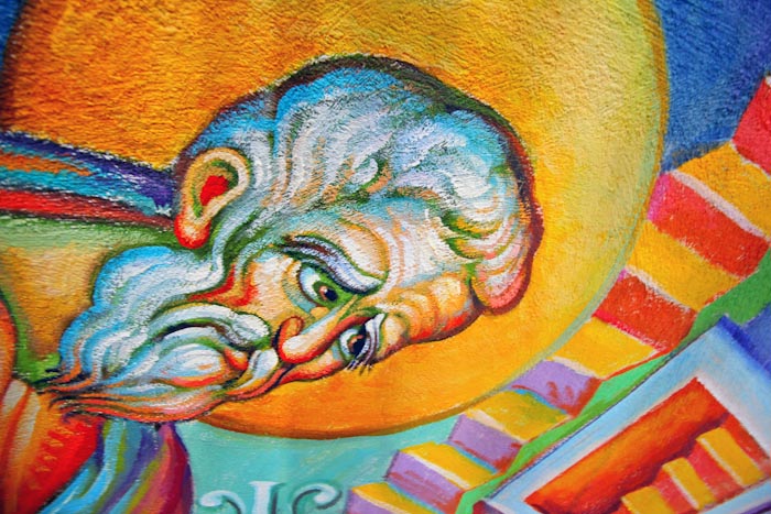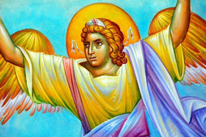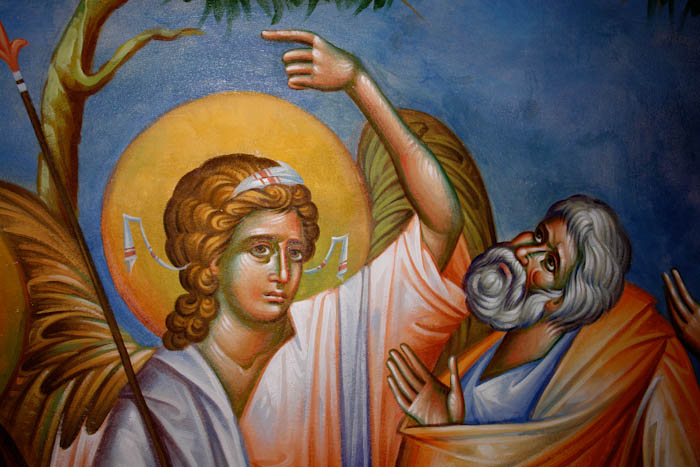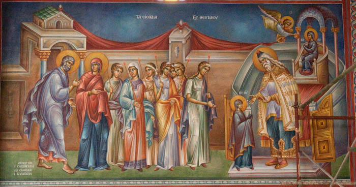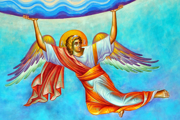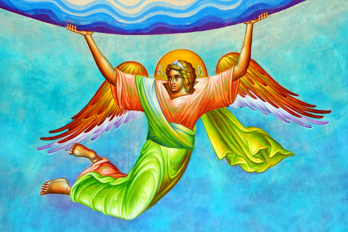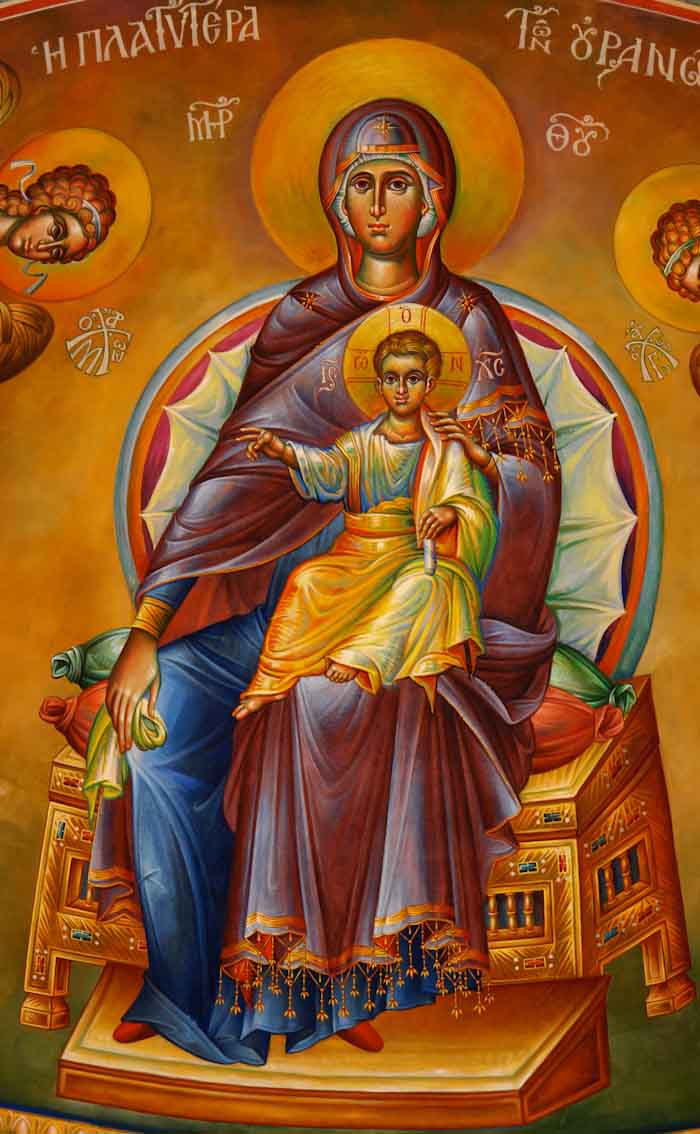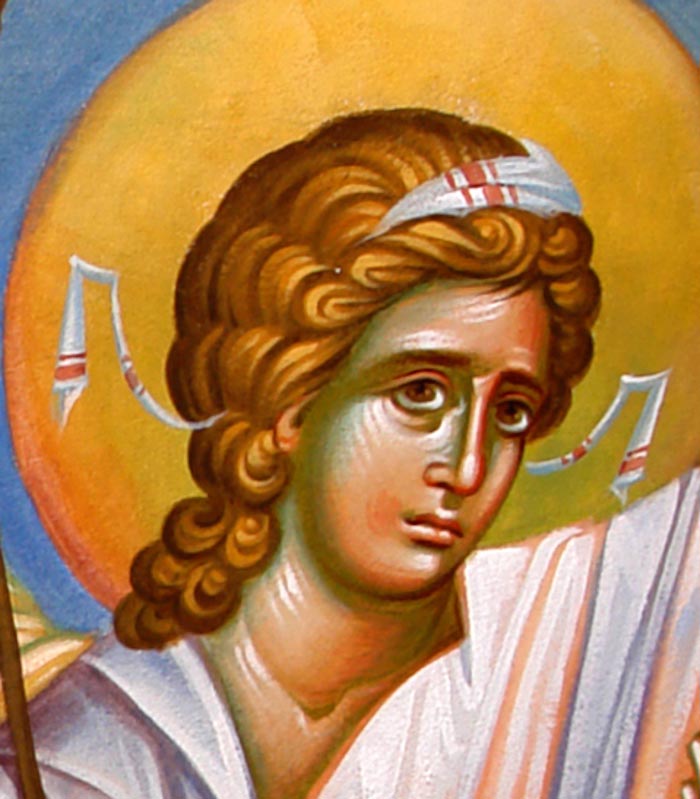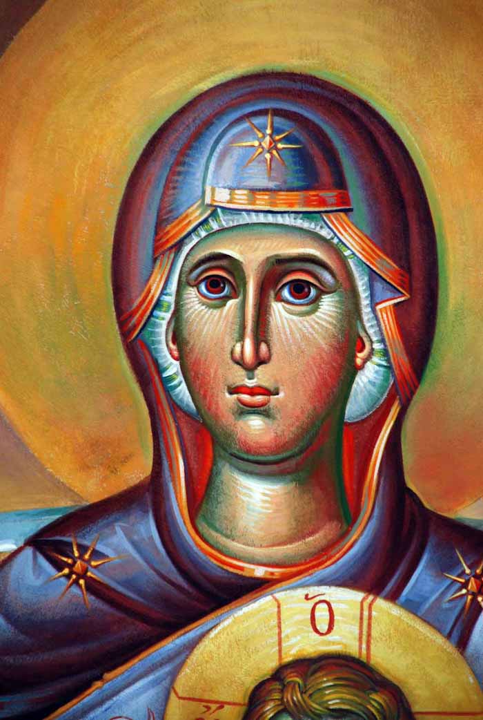 The Annunciation, detail, St Nektarios Church in Voula, Athens, wall-paintings by Stamatis Skliris, 2012.