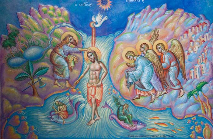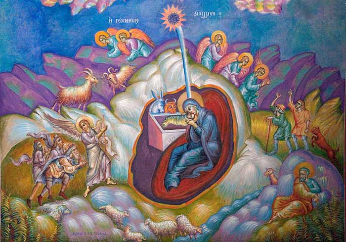 Christ's Nativity, St Nektarios Church in Voula, Athens, wall-paintings by Stamatis Skliris, 2012.