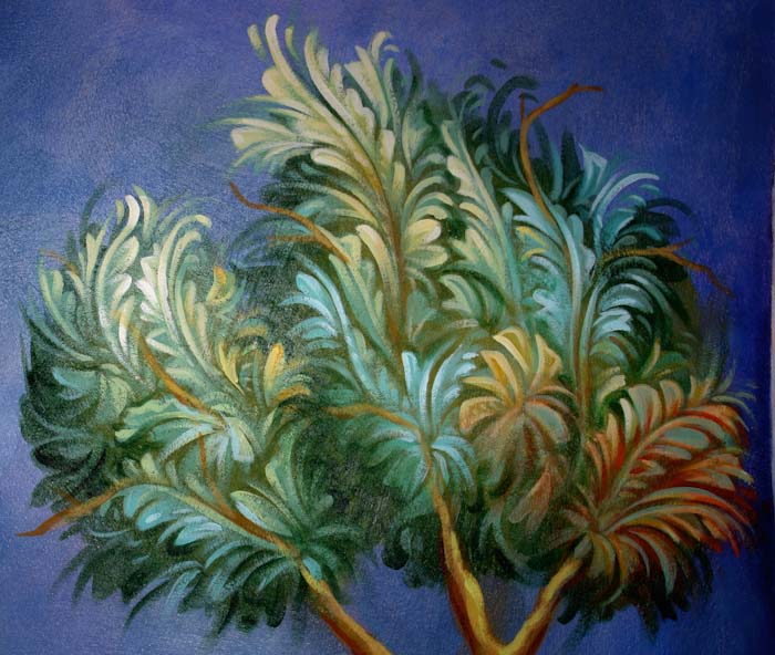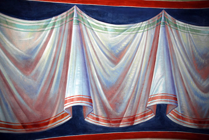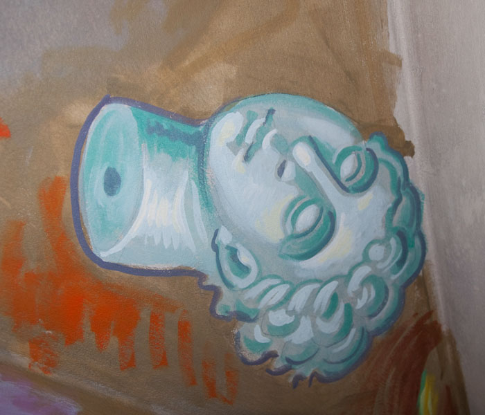 Here is presented the second phase after the drawing. The desing is copied on the wall with blue color and the iconography is ready to start. Wednesday, May 21, 2014.