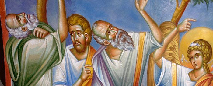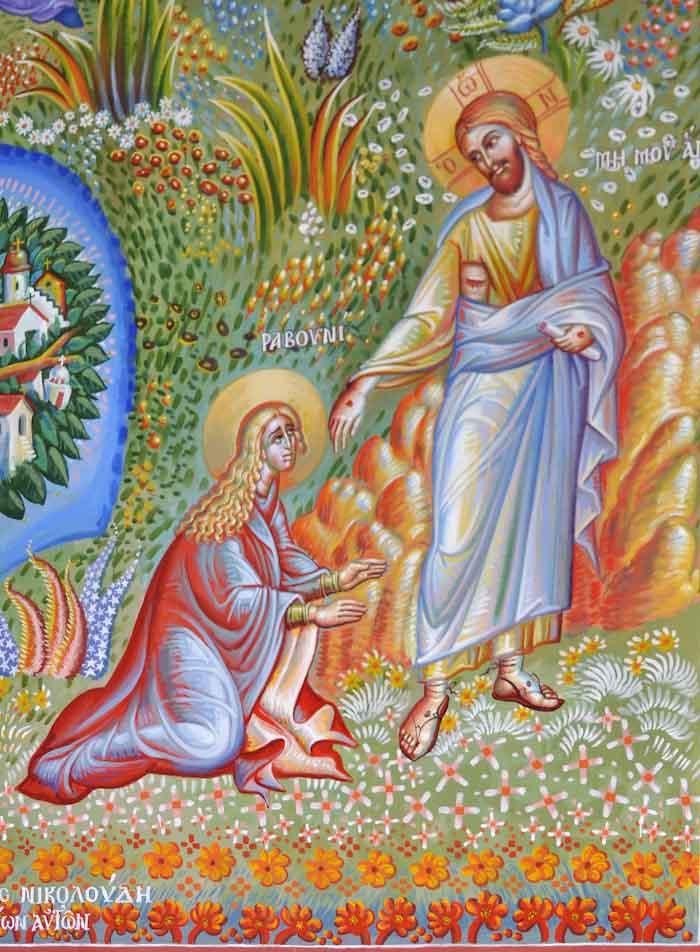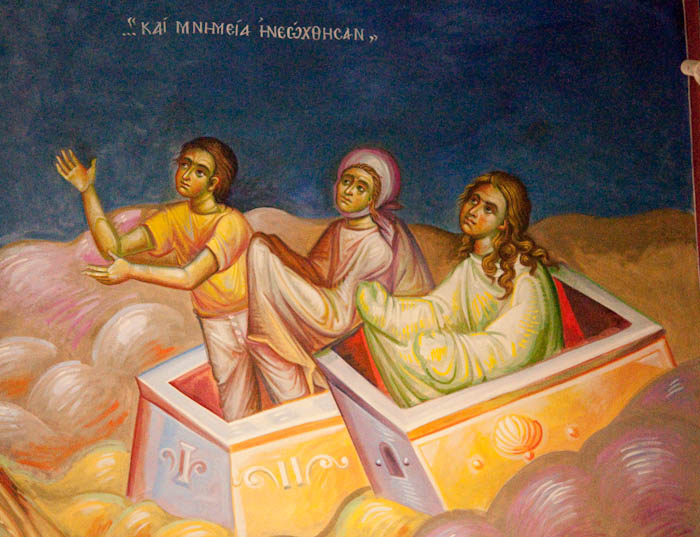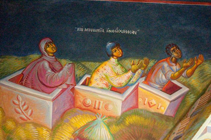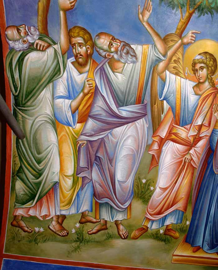 Lamentation upon the Grave (Ἐπιτάφιος θρήνος), detail, Wall Painting, St Nektarios Church, Voula 2016