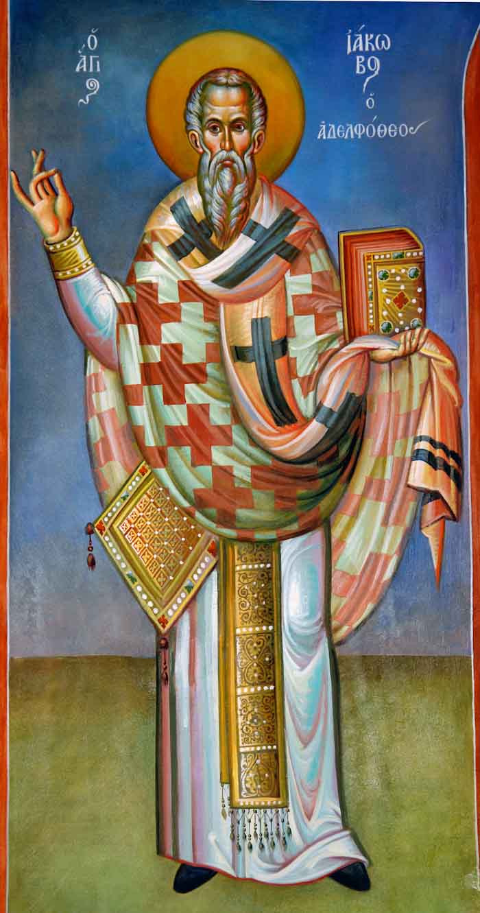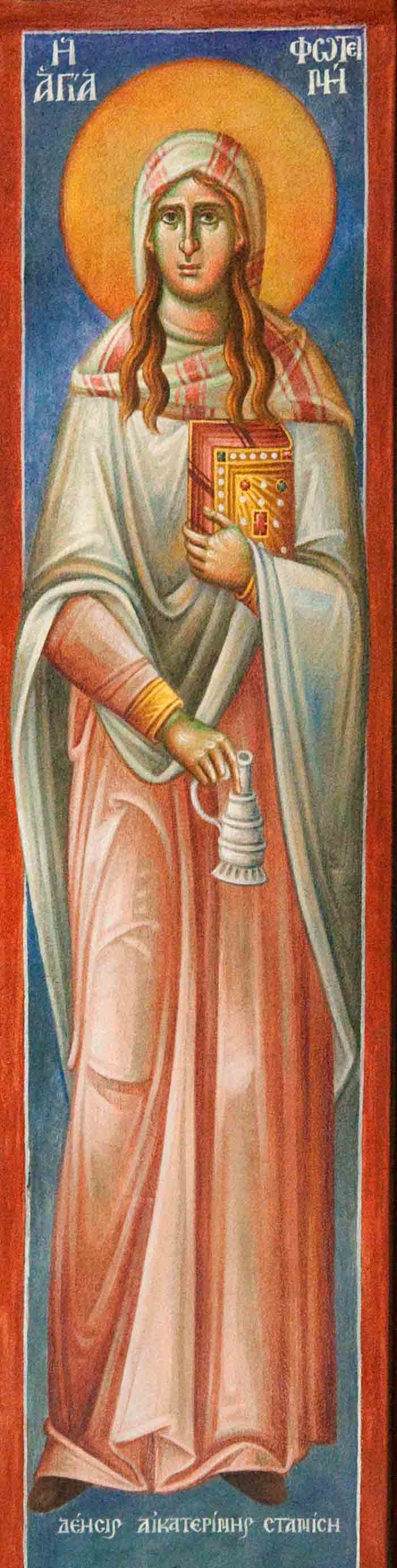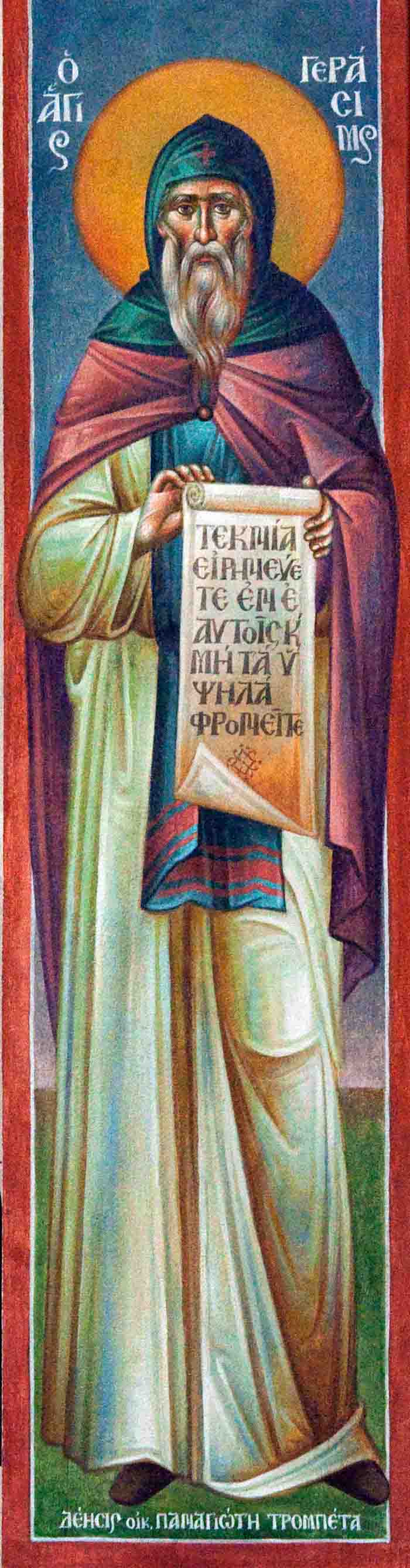 Fr Stamatis begins to paint St John the Theologian in St Nektarios, Ano Voula. Here are seen the first steps, a piece of Saint's garment.