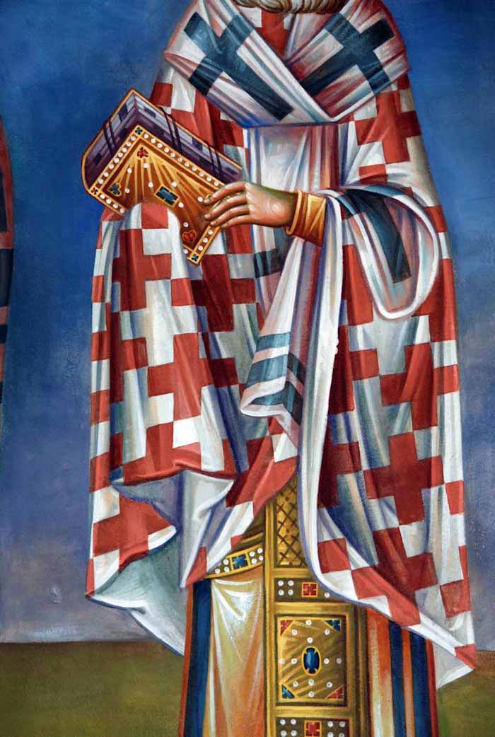 St Matthew, hand (detail), St Nektarios Church, Ano Voula, Stamatis Skliris, 2014