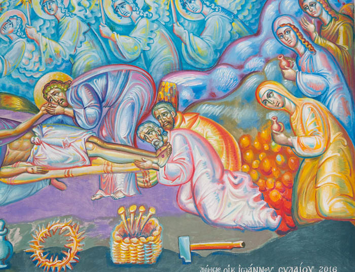 The Deposition from the Cross (Αποκαθήλωση), detail, Wall Painting, St Nektarios Church, Voula 2016