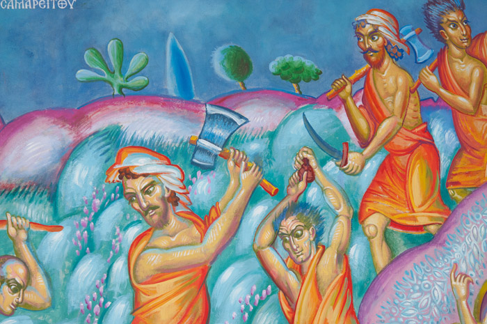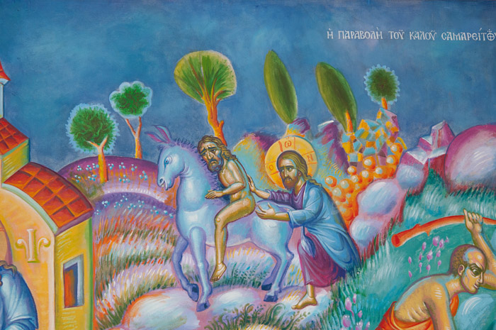 The Good Samaritan, detail, Wall Painting, St Nektarios Church, Voula 2016