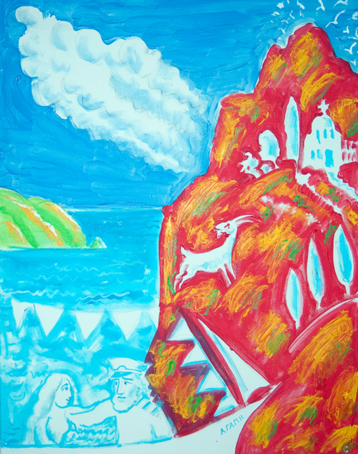 "A Couple Sailing to a Small Island", acrylic on canvas, 2018