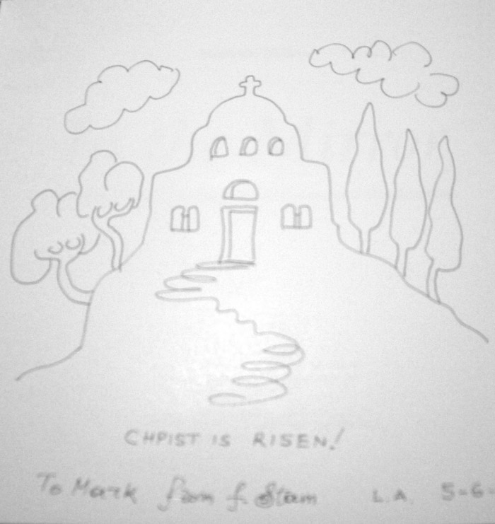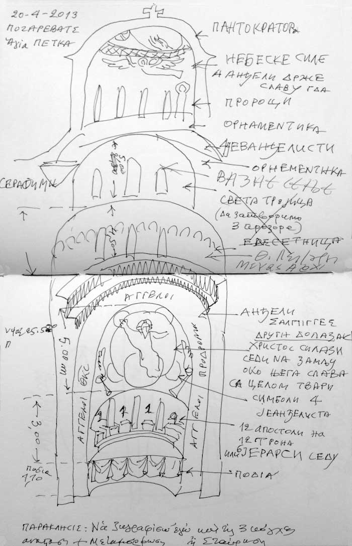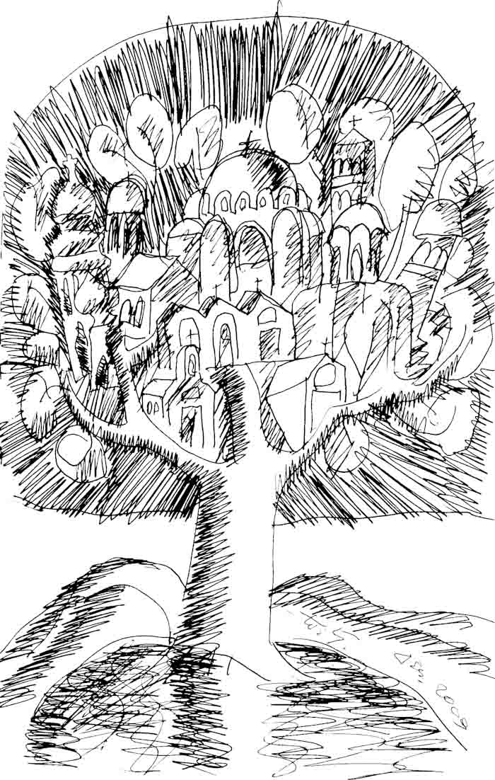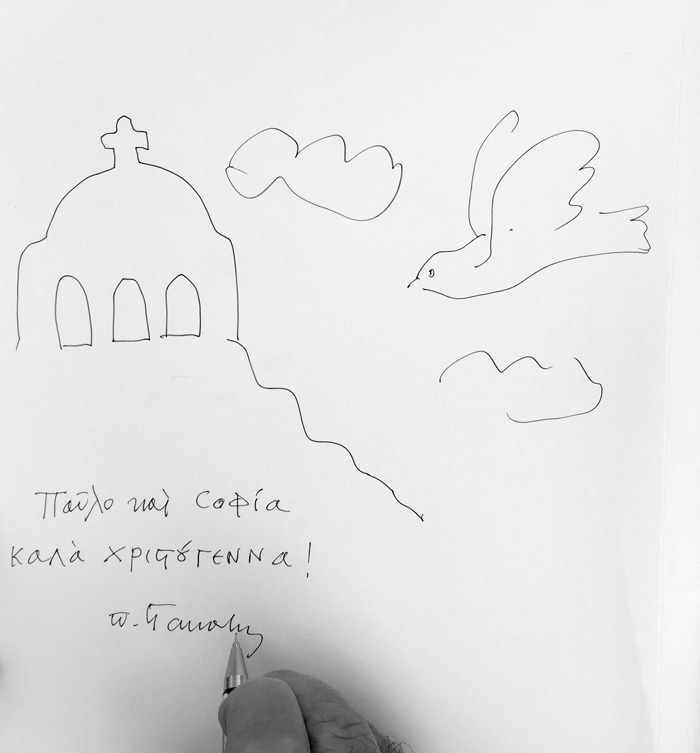 On Saturday 10the of May, 2014, in the theater “TRIANON” in Athens a movie with titled “THE ICONOGRAPHY IN LIGHT OF HOLINESS" was projected; with Stella Arkenti, as producer and Sotiria Adam as music director, showing the ARTISTIC WORK of Fr Stamatis Skliris. The speakers were: Fr. Petros Minopetros, film director, Haris Kambouridis, art critic, and Demetrios Kyriazis, psychiatrist. At the end of the event, Fr Stamaris Skliris signed the DVD of the movie on the spot, and drawn on each of them a sketch, a total of 60 drawings. Some of them are displayed here.