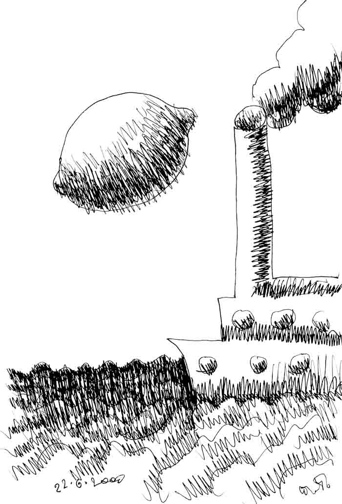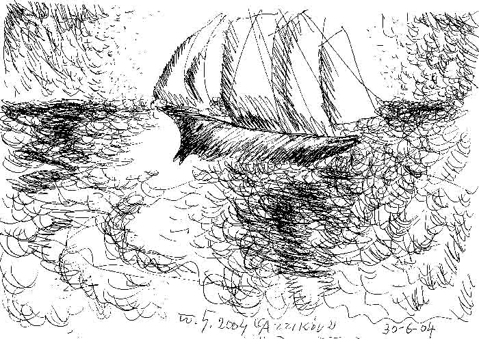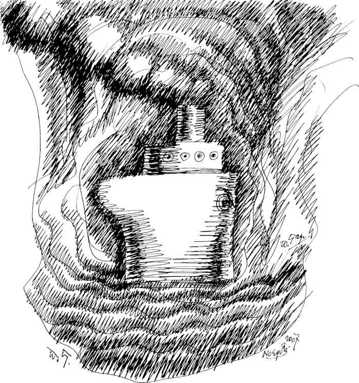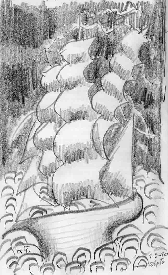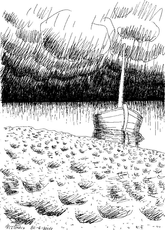 The drawing from which came a series of painting named "The Boat we are Waiting for".
