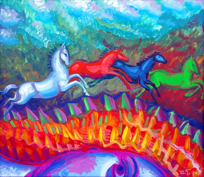 "The Dynamic Mother Earth and Horses", Acrylic on canvas, Athens, 2012.