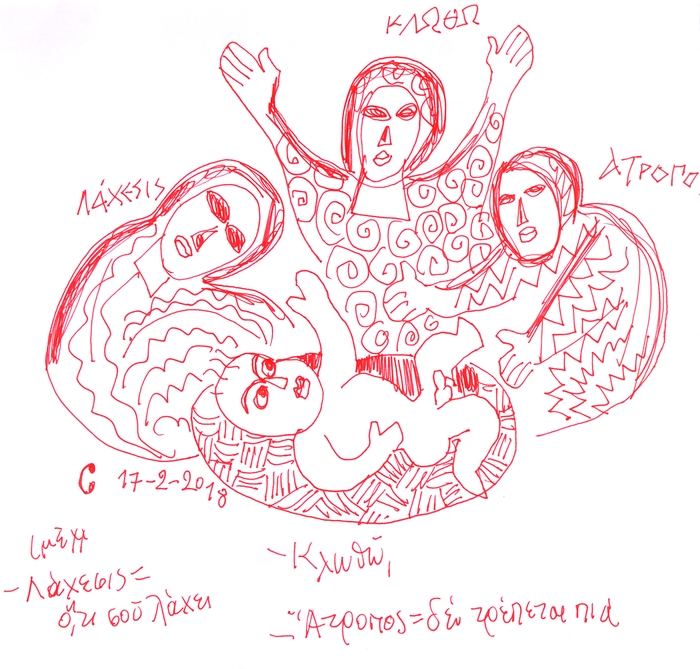Μάνα και κόρη με τις μοίρες, 2011, ακρυλικα σε μουσαμά, 65*85