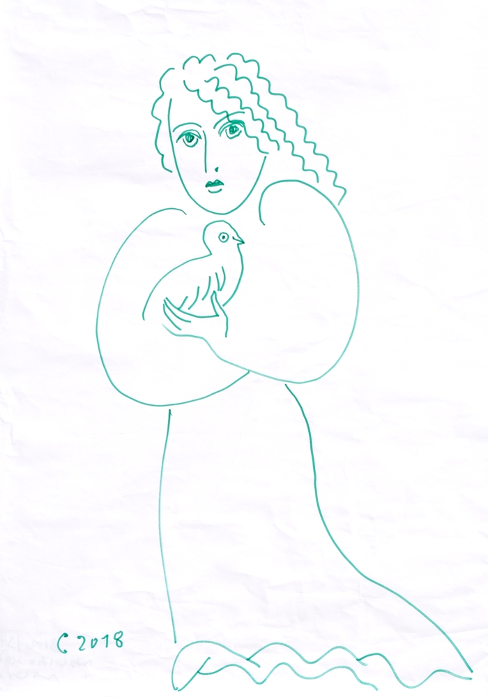 “Angel Greeting Us”, acrylic on canvas, 2020, 70x47