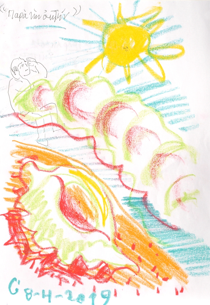 Ένας ήλιος αναμεσα στους πάγους, 2019, ακρυλικό σε μουσαμά, 19.5*69