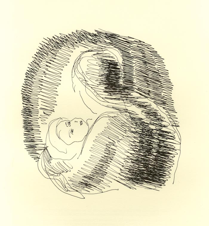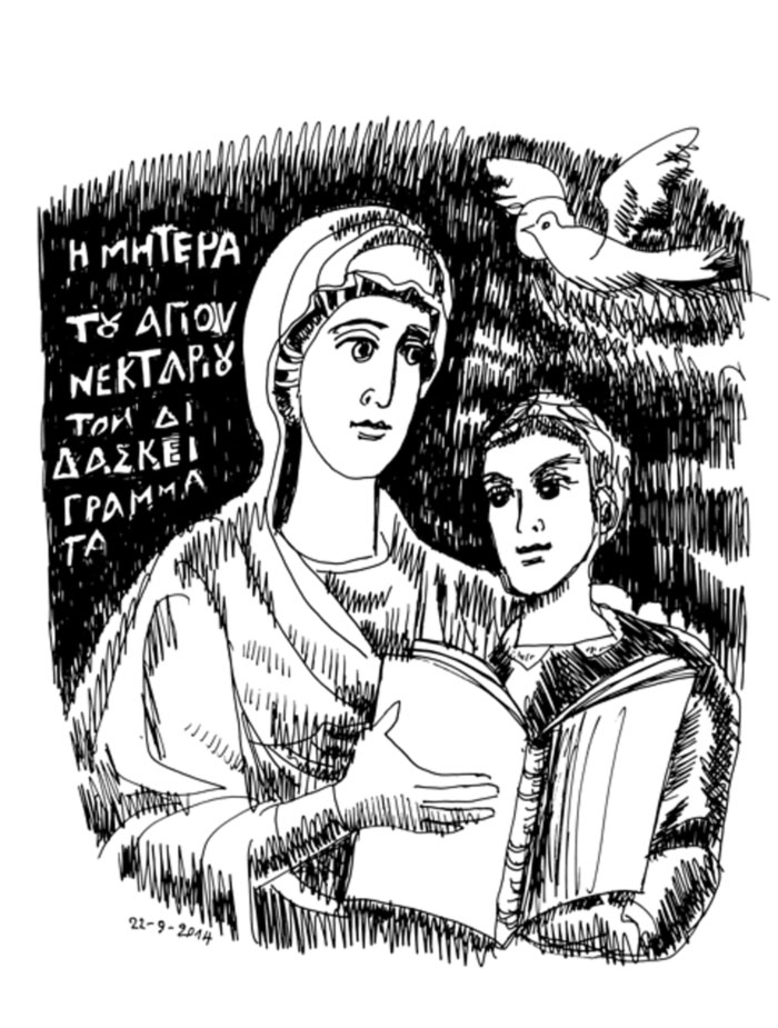 St Nectarios' Mother Teaches Him Letters, drawing, 2014.