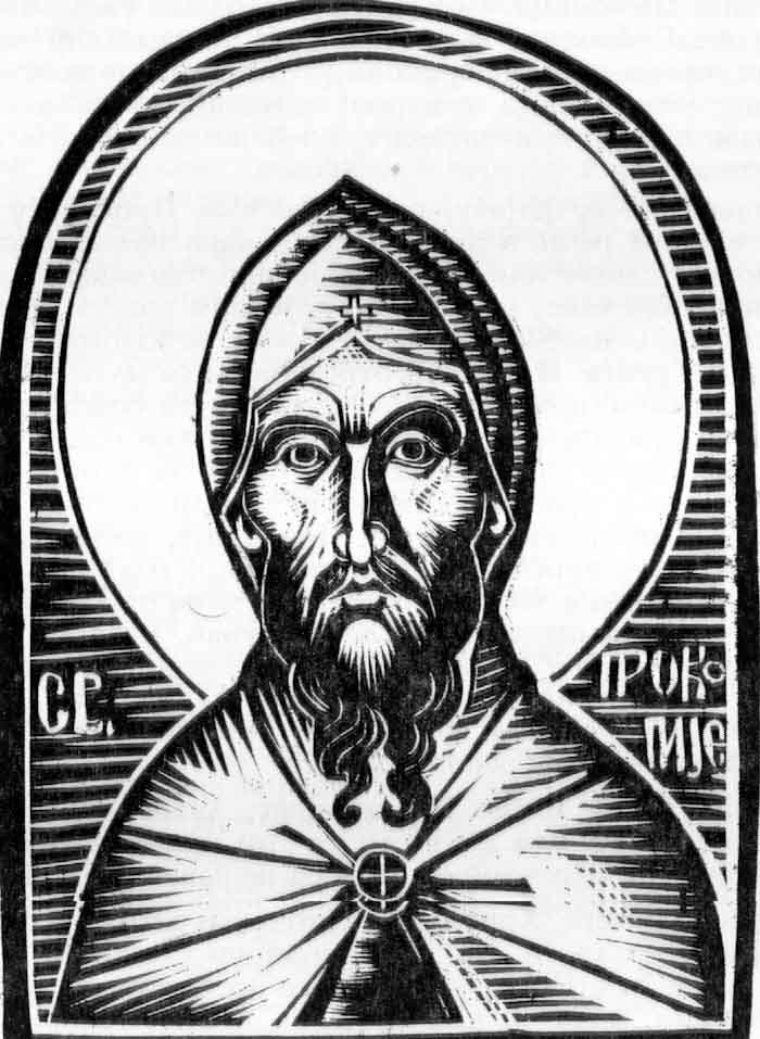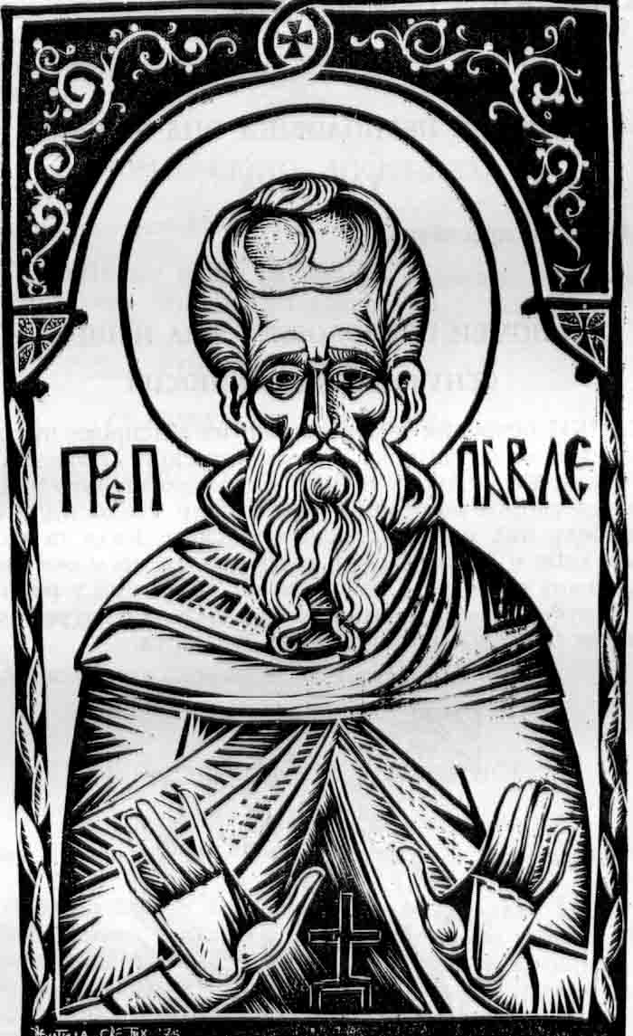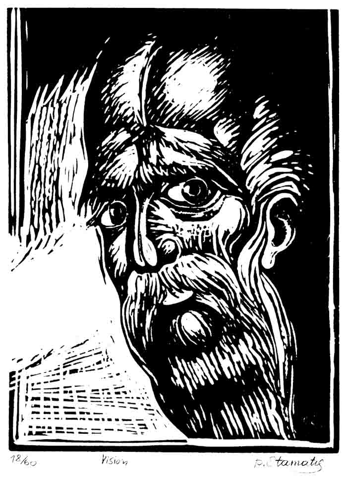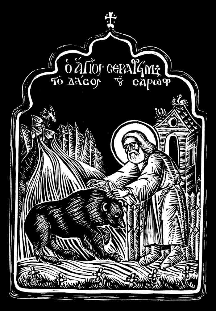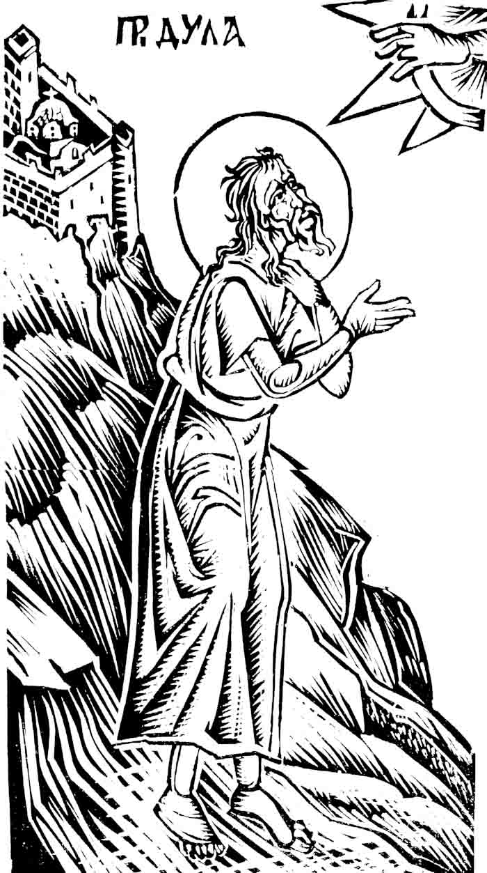 Saint Symeon the Fool for Christ, engraving on linoleum