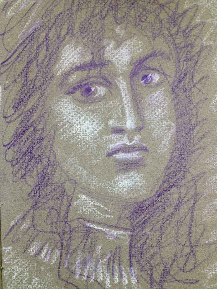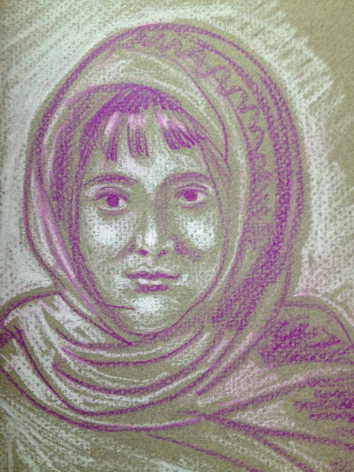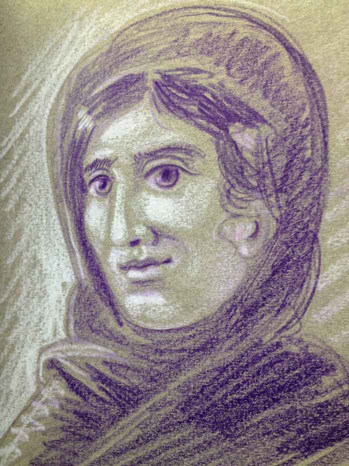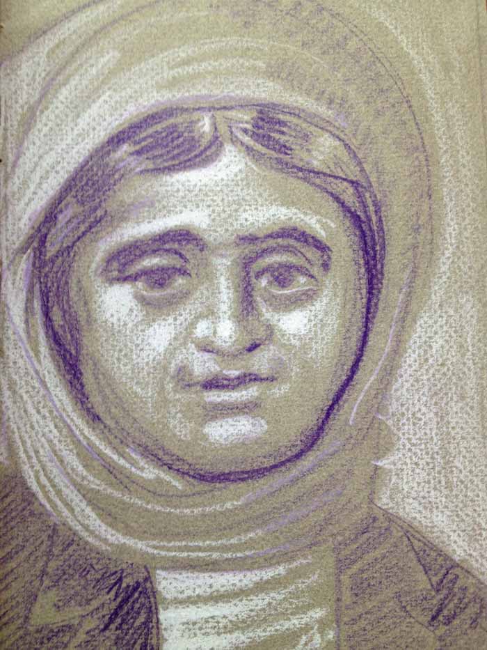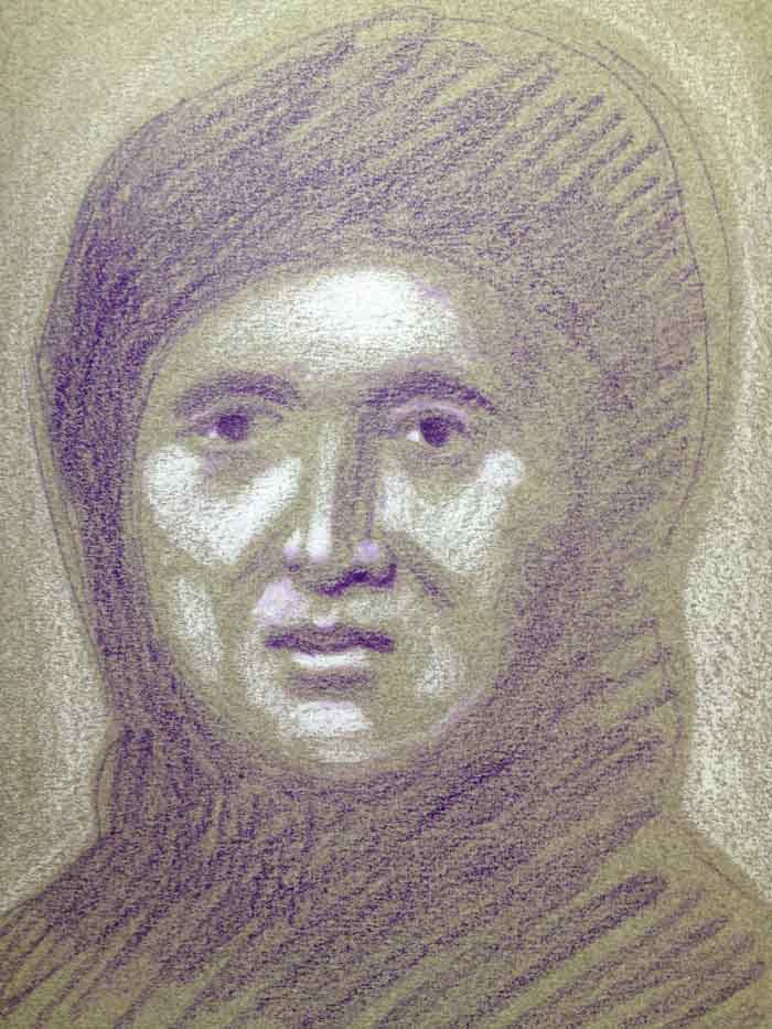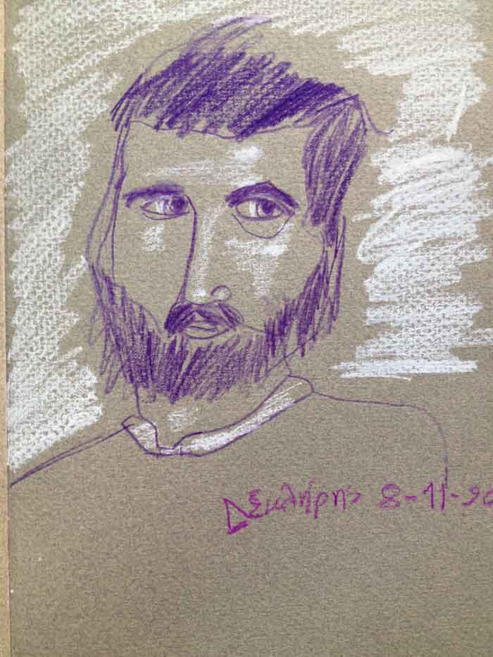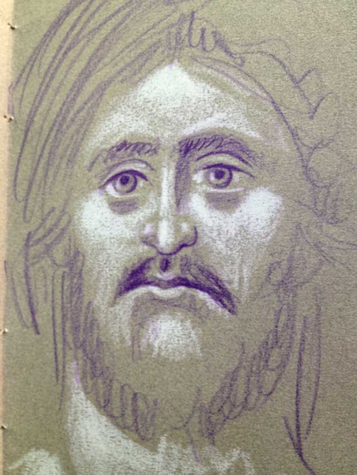Stamatis’ pastels are a unique effort among the Orthodox iconographers to evoke and elicit the byzantine artistic view through the medium of pastel. The color effect of these pastels is very close to the natural dry pigments. Pastel is an art medium in the form of a stick, consisting of pure powdered pigment and a binder. These portrayals show that the byzantine art is not limited in its potential. Stamatis pastel crayons (from pure powdered pigments) vigorously capture various human psychological moments. The pastel medium was first mentioned by Leonardo da Vinci in 1495. During the 18th century the medium became fashionable for portrait painting, sometimes in a mixed technique with gouache.