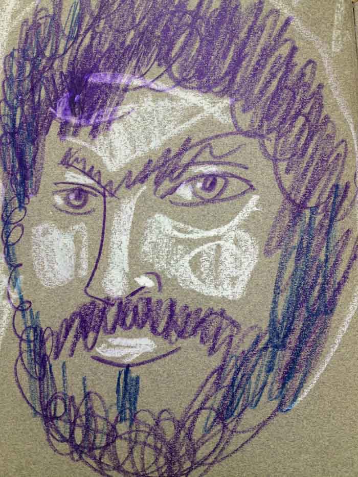 "THE TEENAGERS OF ATHENS" started with the two little purple faces that my son Dionysios drew around 1989 as a third-grade student, and I continued playing with the crayons (without intending to make it a complete work) after many years and once (2014?) I added the Parthenon and the mountains of Athens (Parnitha) to make it more comprehensive.