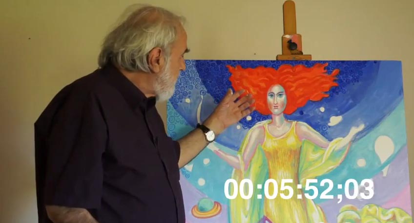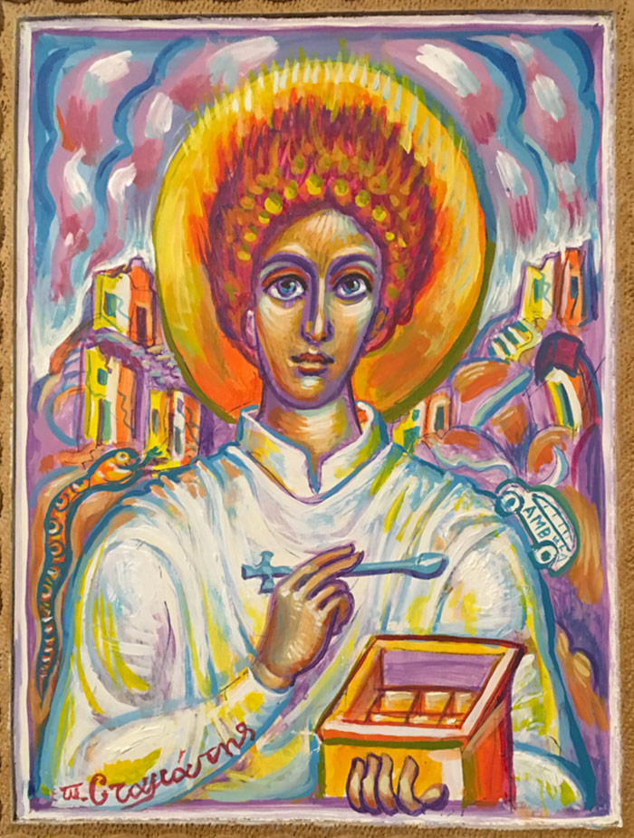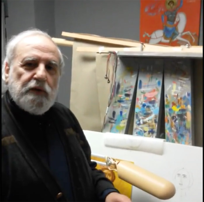 Fr. Stamatis explains his work "Angel of the Resurrection”, Acrylic on canvas, 2017