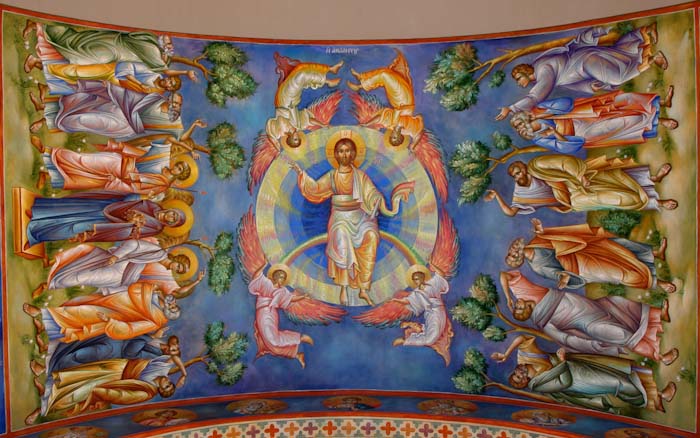 Ascension, Saint Nektarios Church in Voula, Greece, fresco/seco wall painting by Stamatis Skliris, 2008-2012.