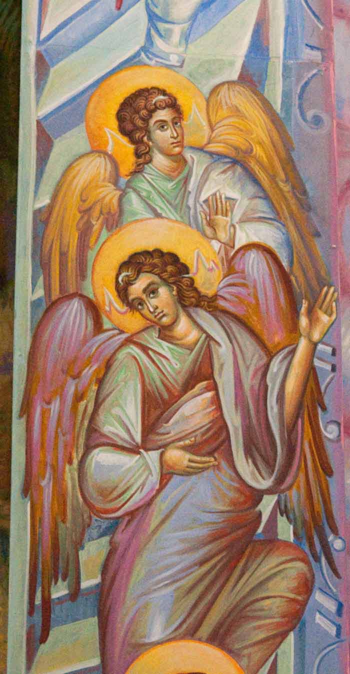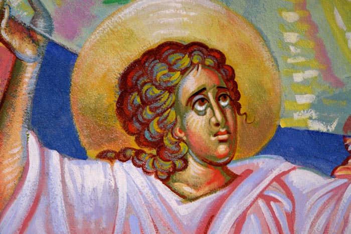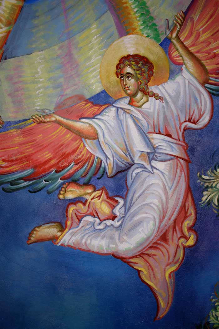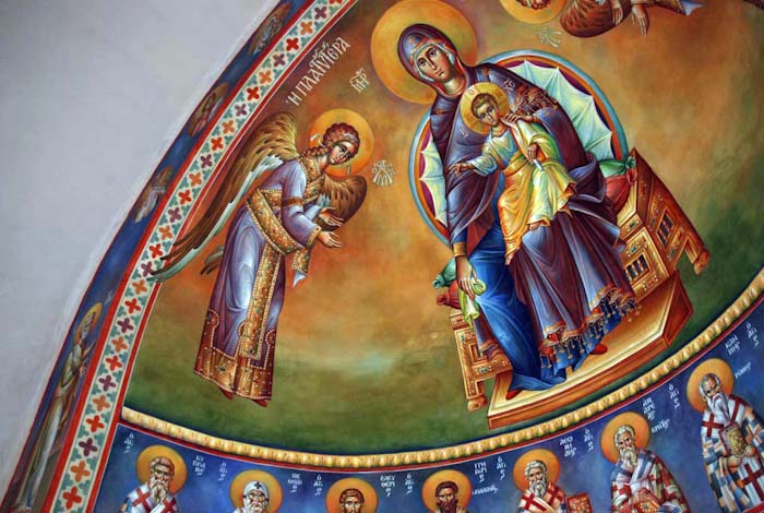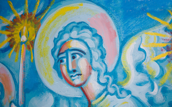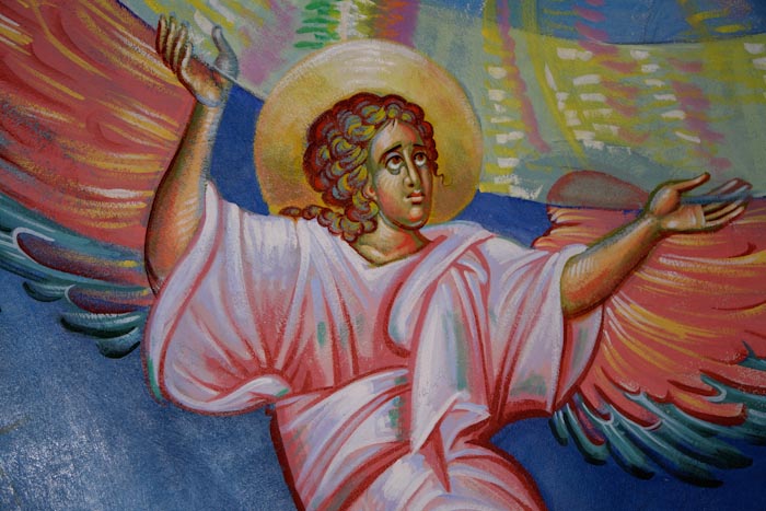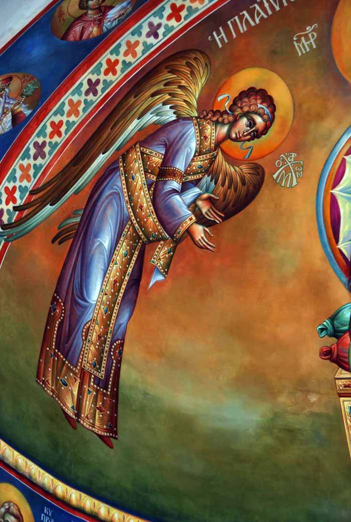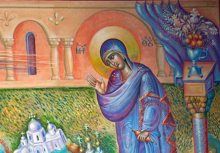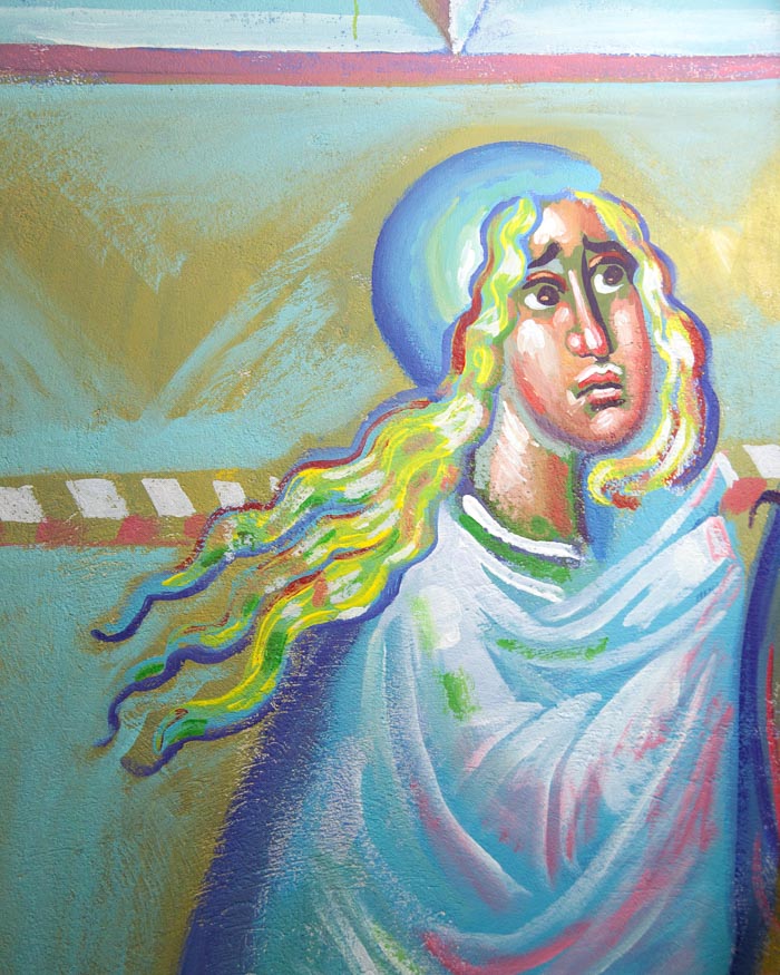 The Annunciation, detail, St Nektarios Church in Voula, Athens, wall-paintings by Stamatis Skliris, 2012.