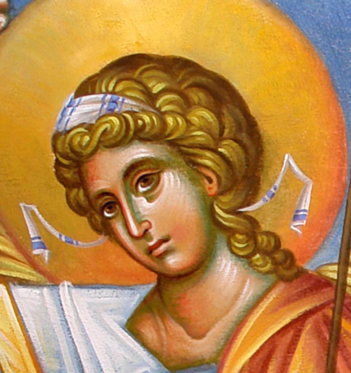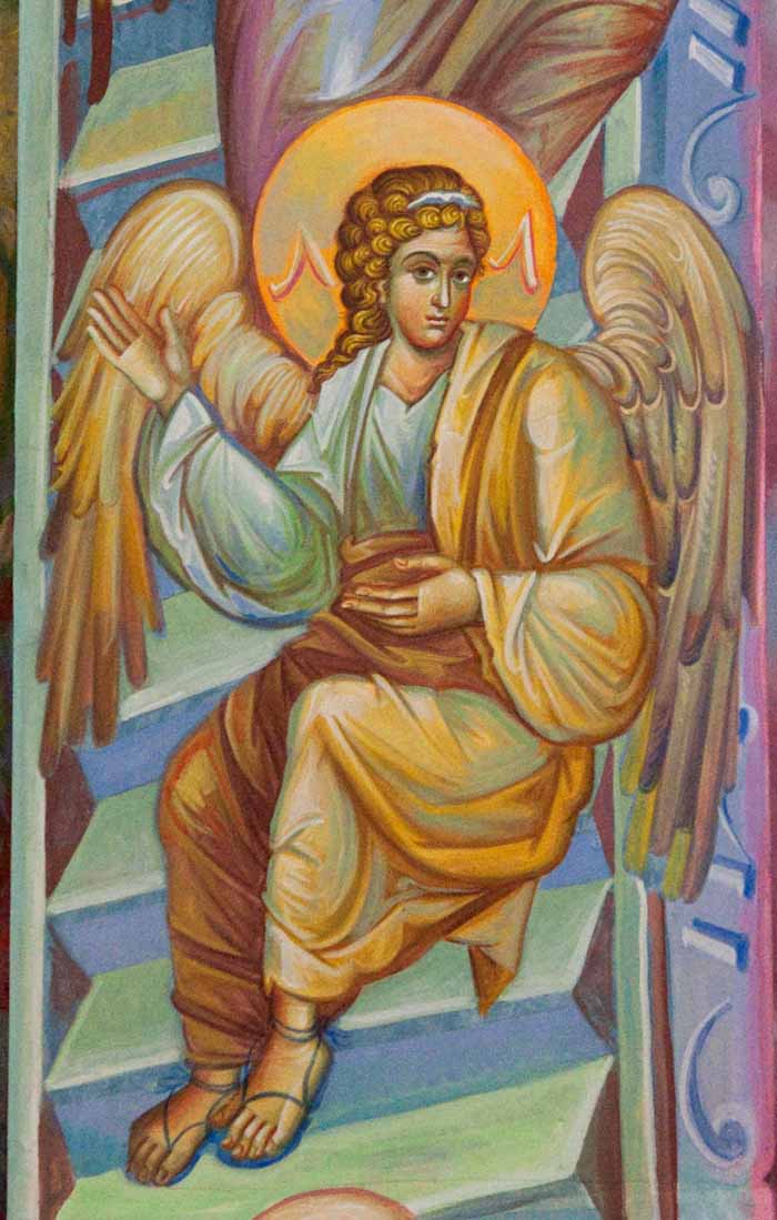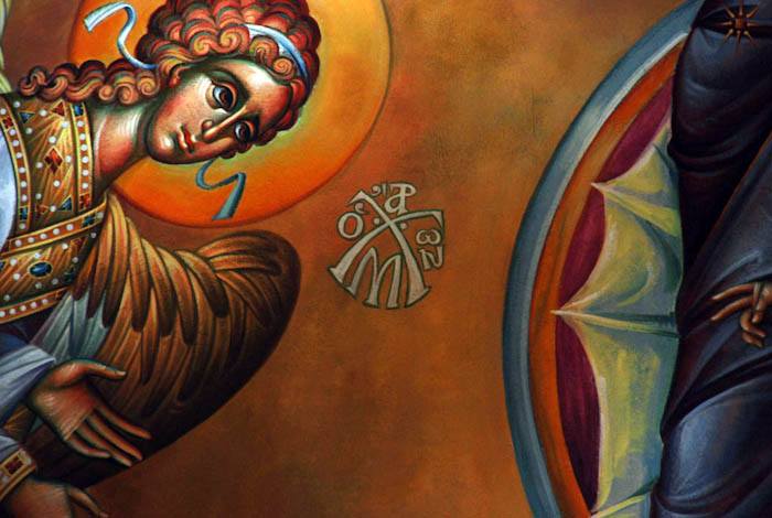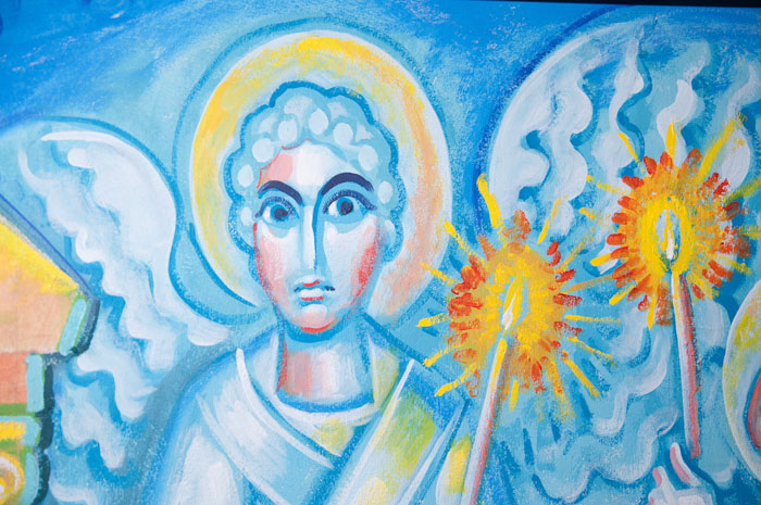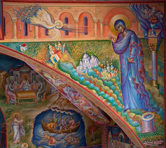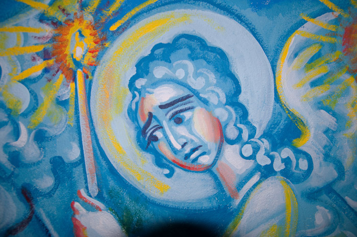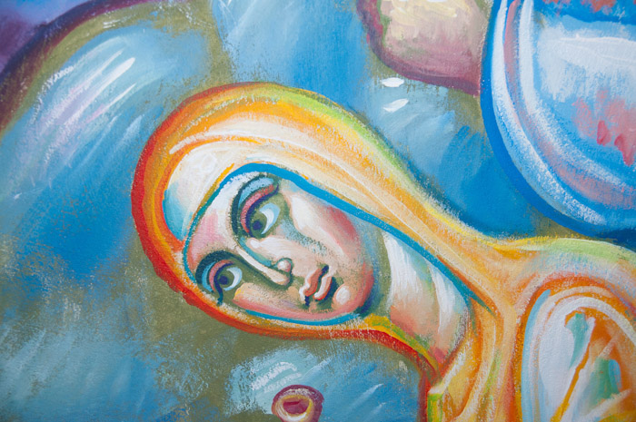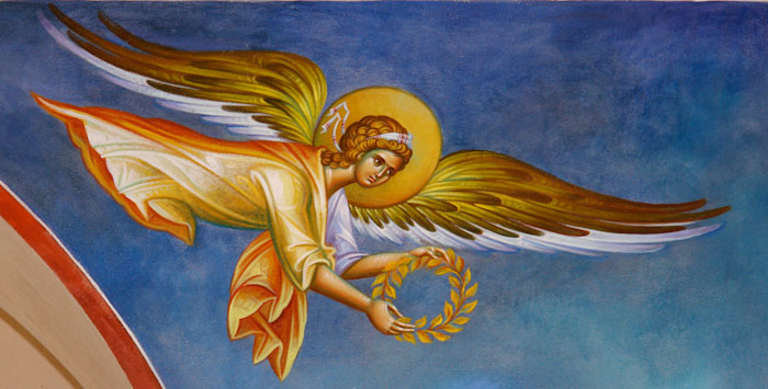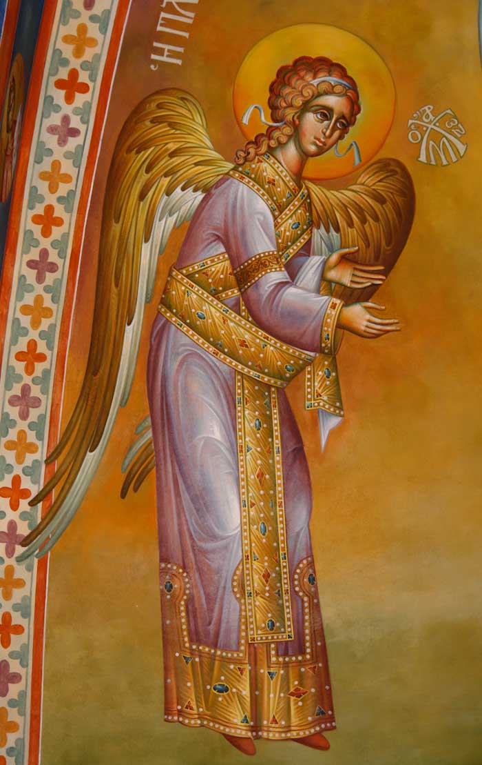 The Annunciation, detail, St Nektarios Church in Voula, Athens, wall-paintings by Stamatis Skliris, 2012.