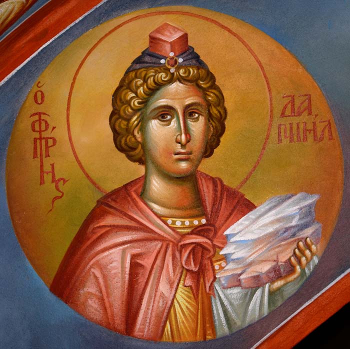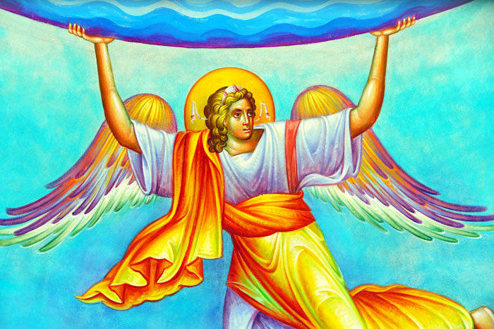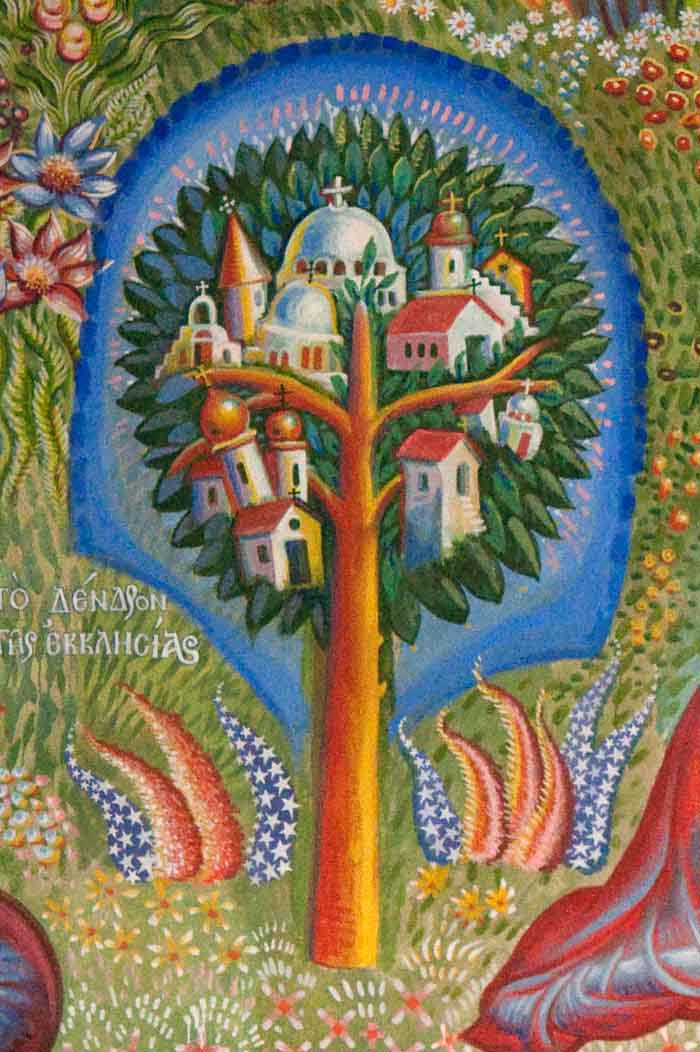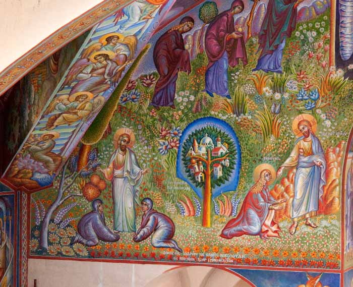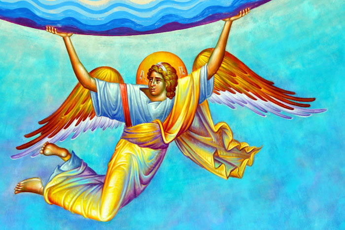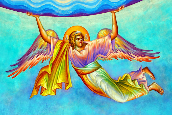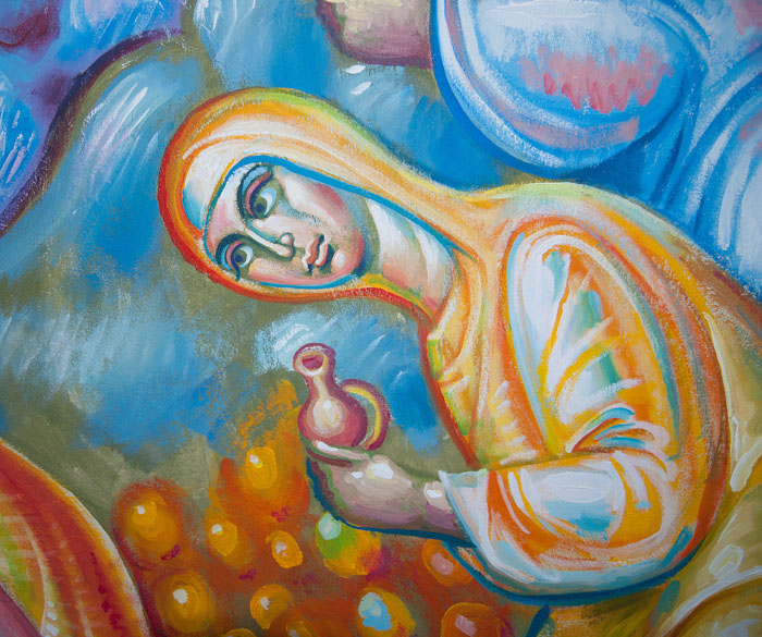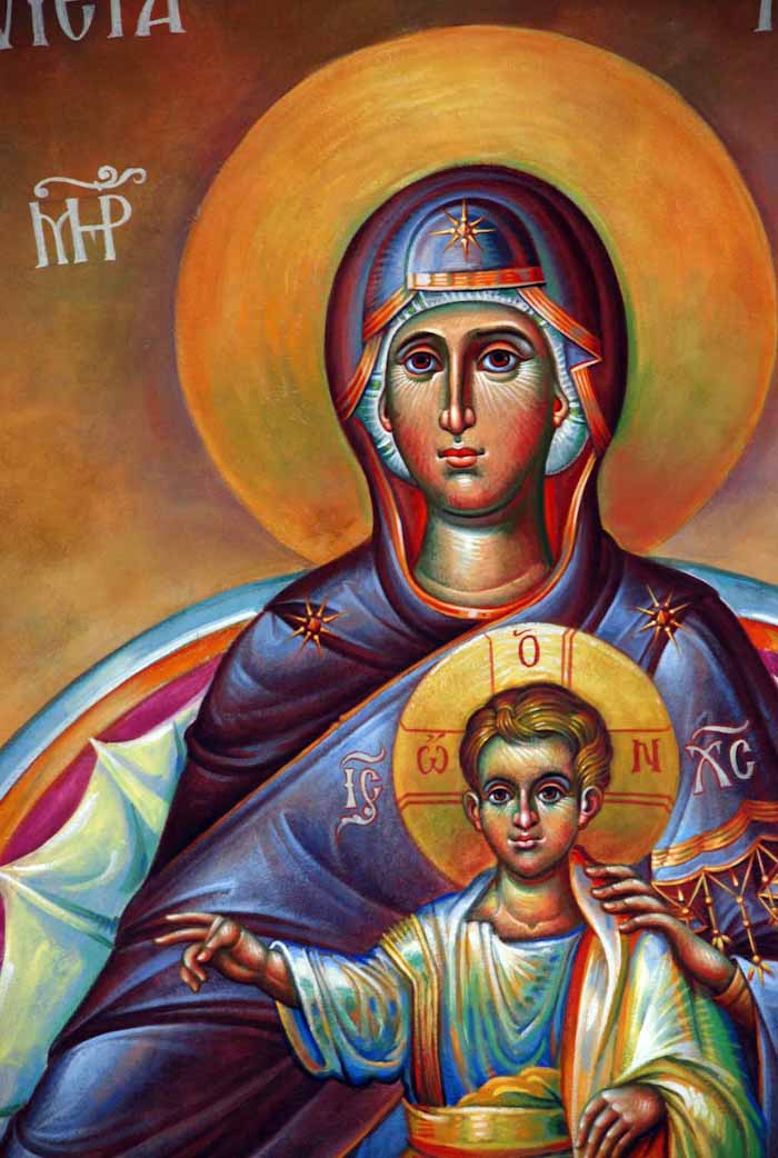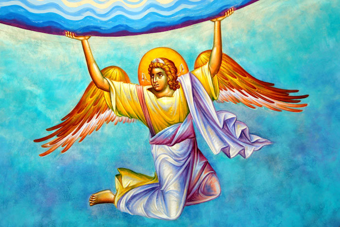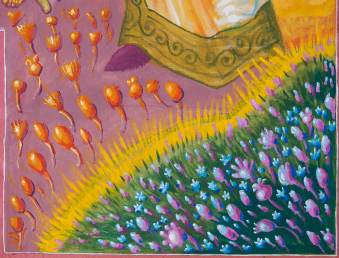 The Annunciation, detail, St Nektarios Church in Voula, Athens, wall-paintings by Stamatis Skliris, 2012.