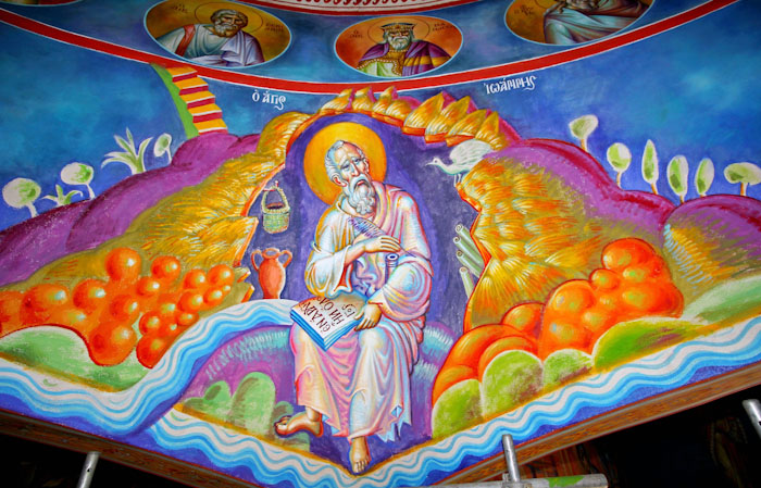 Unfinished wall painting of St John the Theologian, St Nektarios Church in Ano Voula, June 6, 2014.