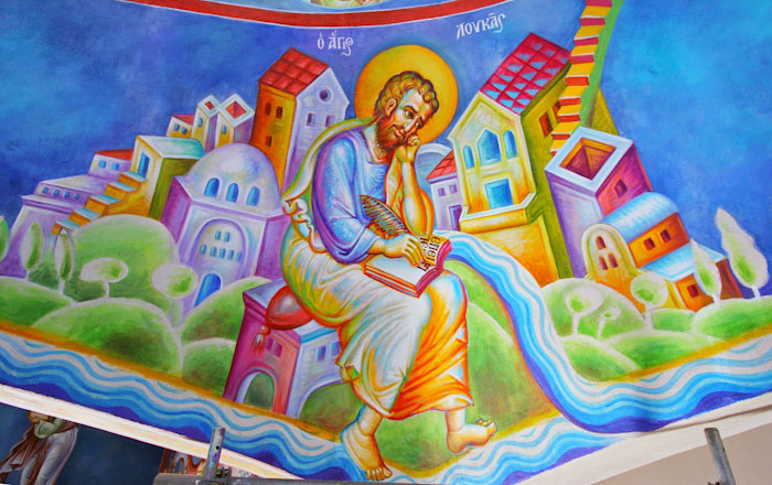 St Matthew, during the wall-painting of the dome in St Nektarios Church, Ano Voula, Stamatis Skliris, 2014