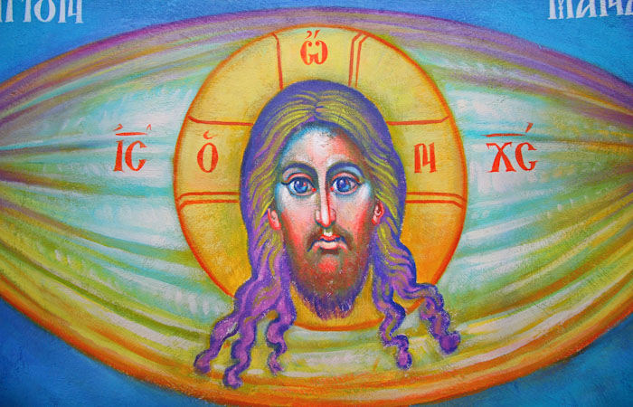Christ Pantocrator, detail, St Nektarios Church, wall-painting, Ano Voula, Attiki, Greece 2014.