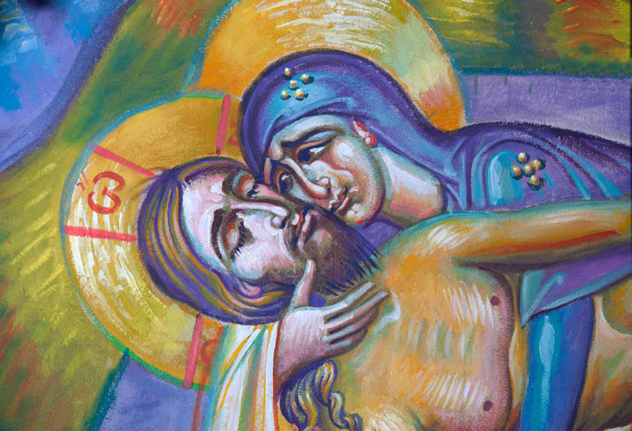 The Deposition from the Cross (Αποκαθήλωση), detail, Wall Painting, St Nektarios Church, Voula 2016