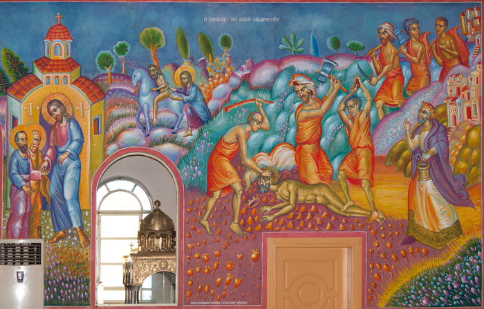 The Good Samaritan, detail, Wall Painting, St Nektarios Church, Voula 2016
